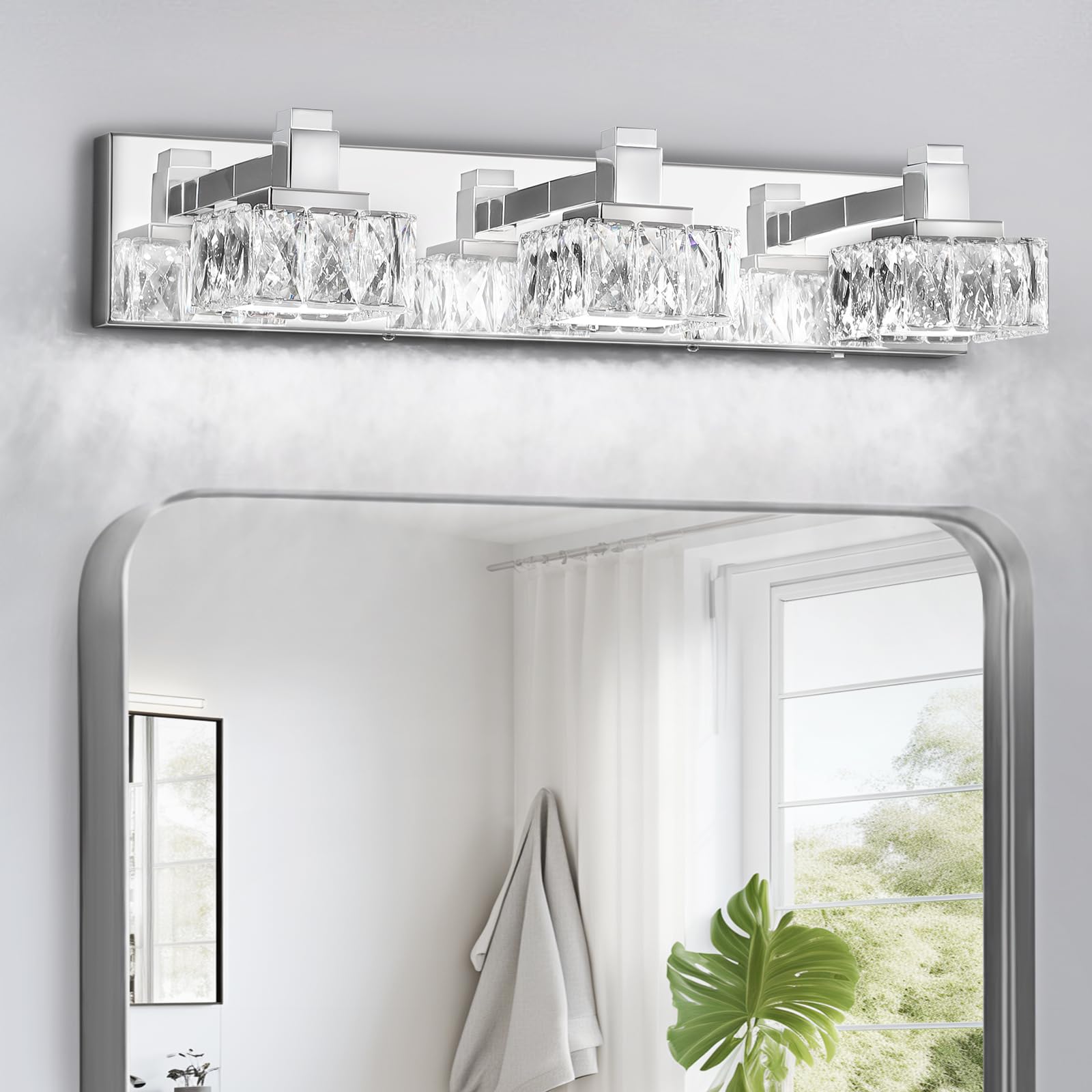 SineRise Luces de tocador de baño sobre espejo, 3 luces regulables 5CCT, luces LED de tocador de cristal cromado, iluminación de p