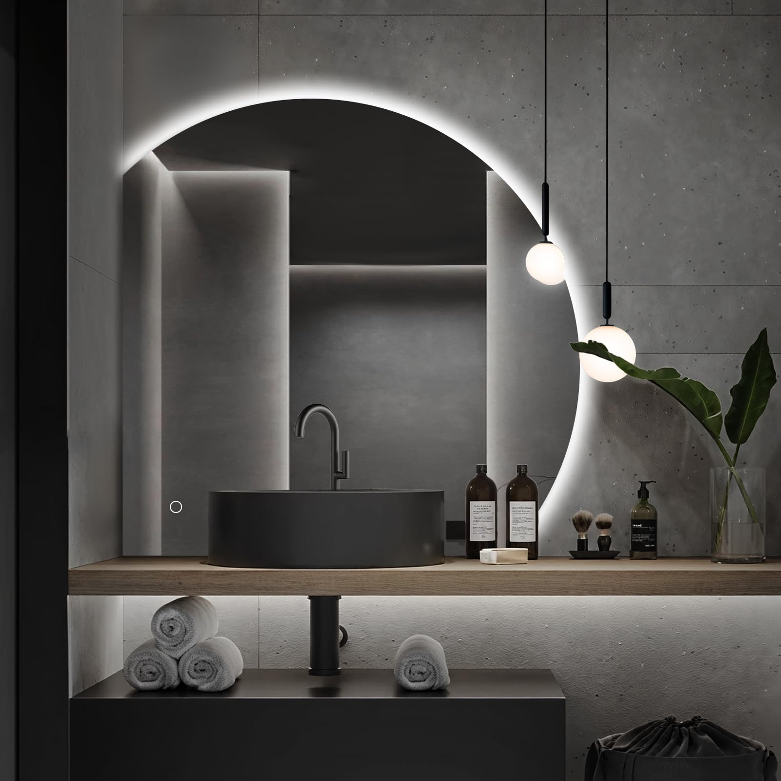 Niccy Espejo LED de media luna de 32 pulgadas para baño, espejos semicírculos retroiluminados sin marco para entrada, espejos ilum
