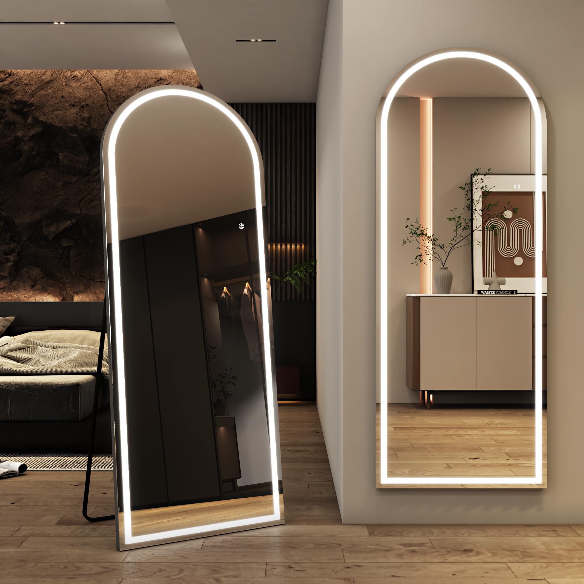 FENNIO Espejo de longitud completa con luces, espejo LED de cuerpo completo de 57 x 17 pulgadas, espejo de piso iluminado de pie,