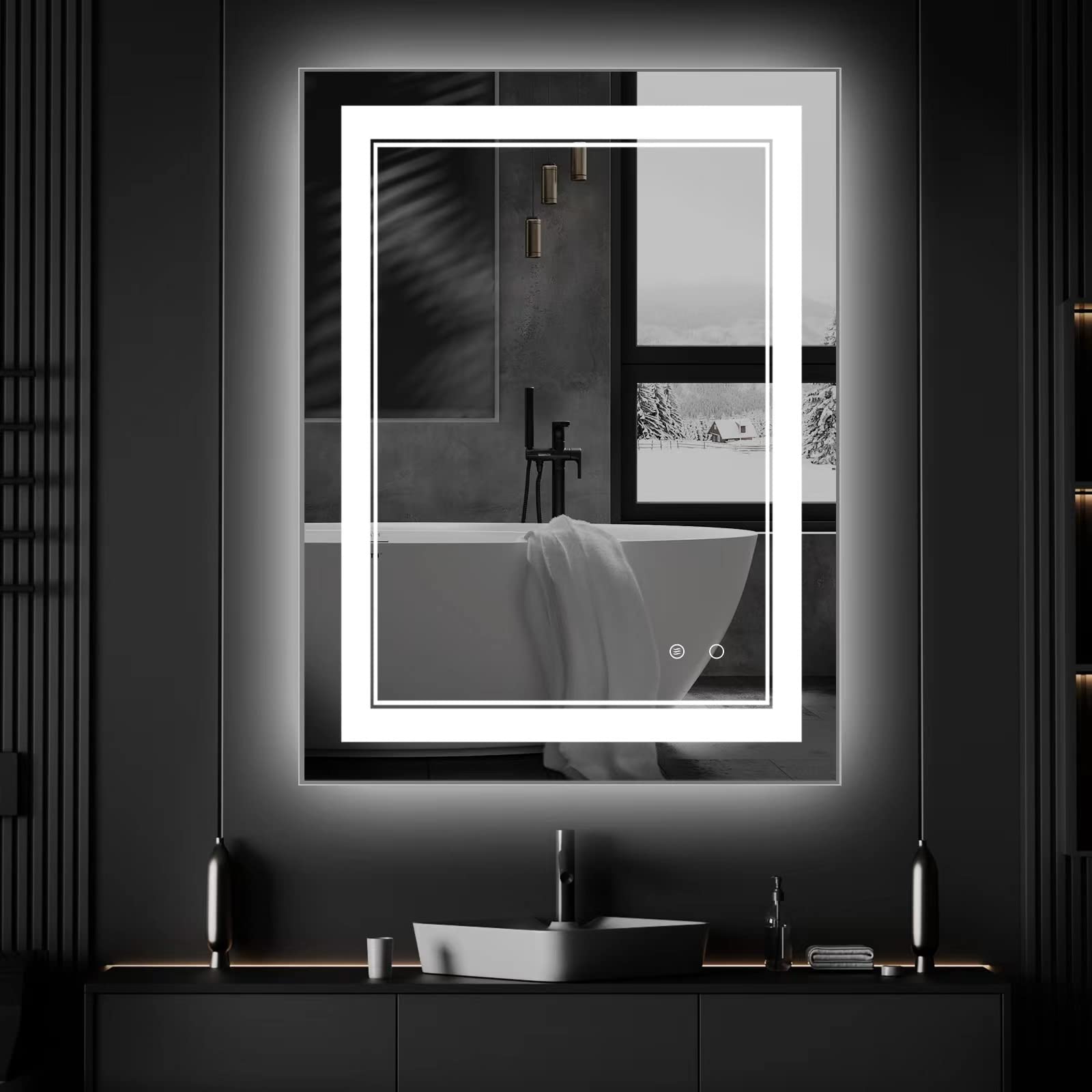 Amorho Espejo de baño LED de 50 x 32 pulgadas con luz delantera y trasera, espejos de pared regulables sin pasos con antiniebla, a