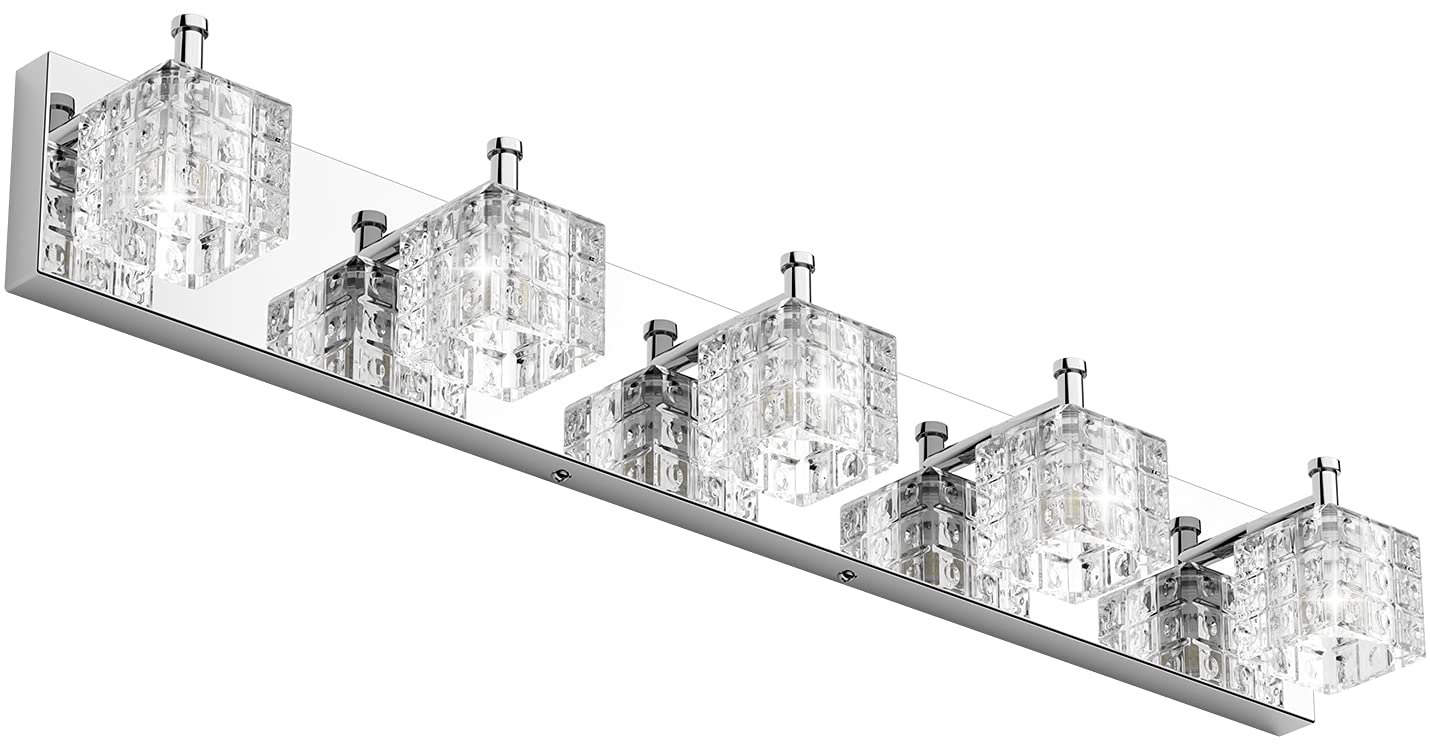 Ralbay Lámparas de tocador de baño cromadas, 5 luces, luces LED modernas cromadas sobre espejo, luces de tocador de cristal modern