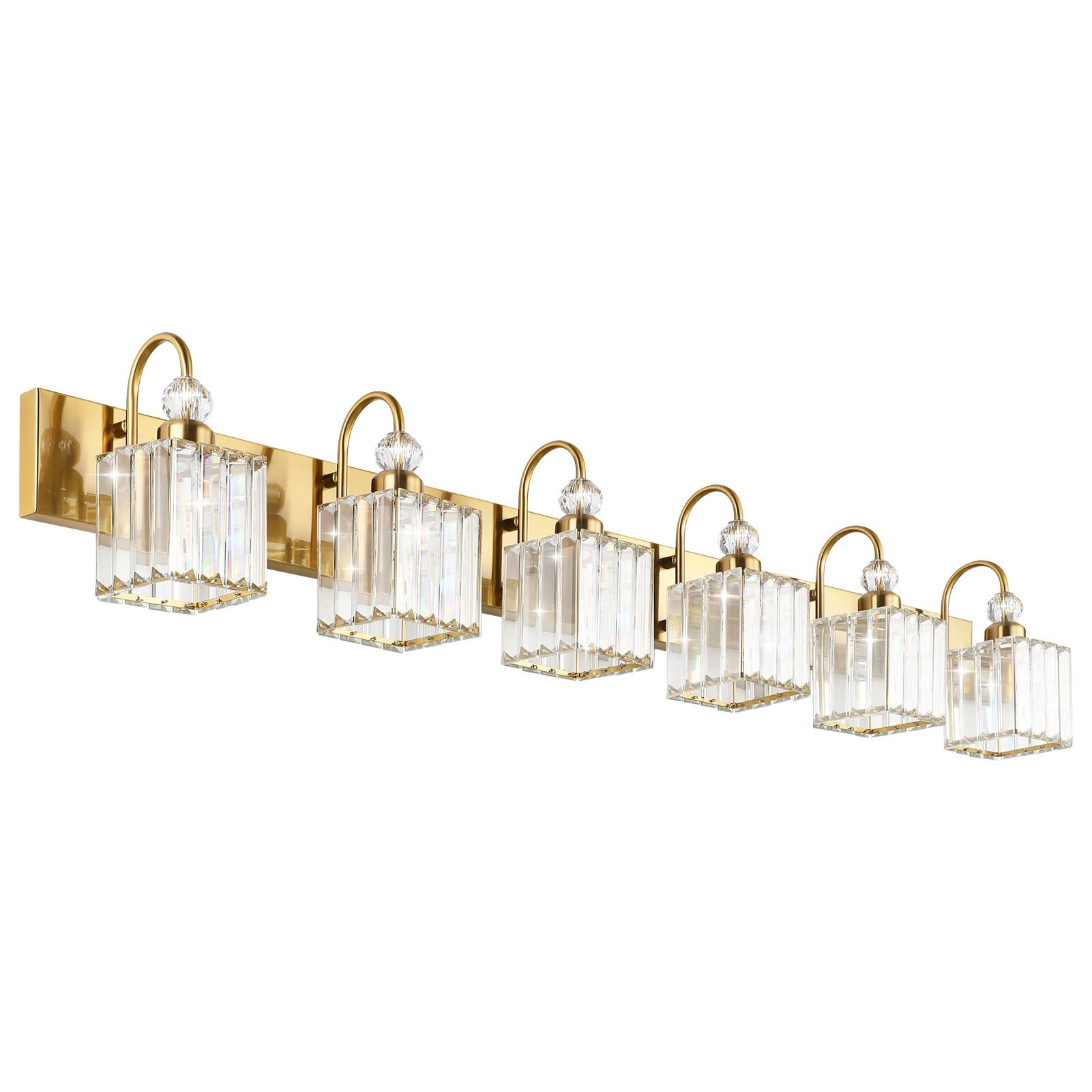 Ralbay Modernas luces doradas para tocador, 6 luces doradas de cristal dorado sobre espejo largo