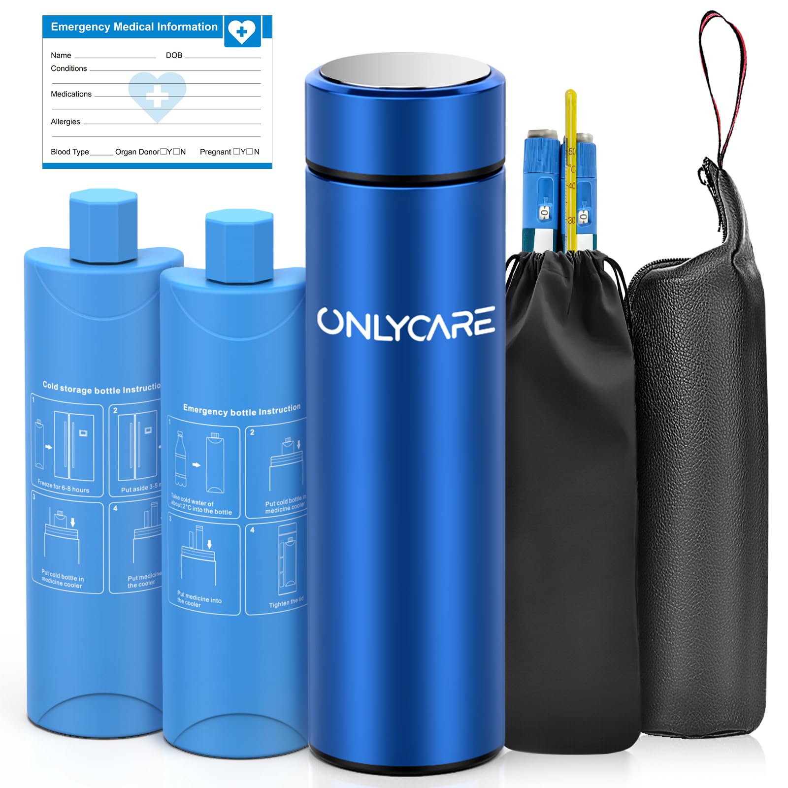 ONLYCARE Estuche de viaje portátil para bolígrafo de insulina para 3 bolígrafos, azul