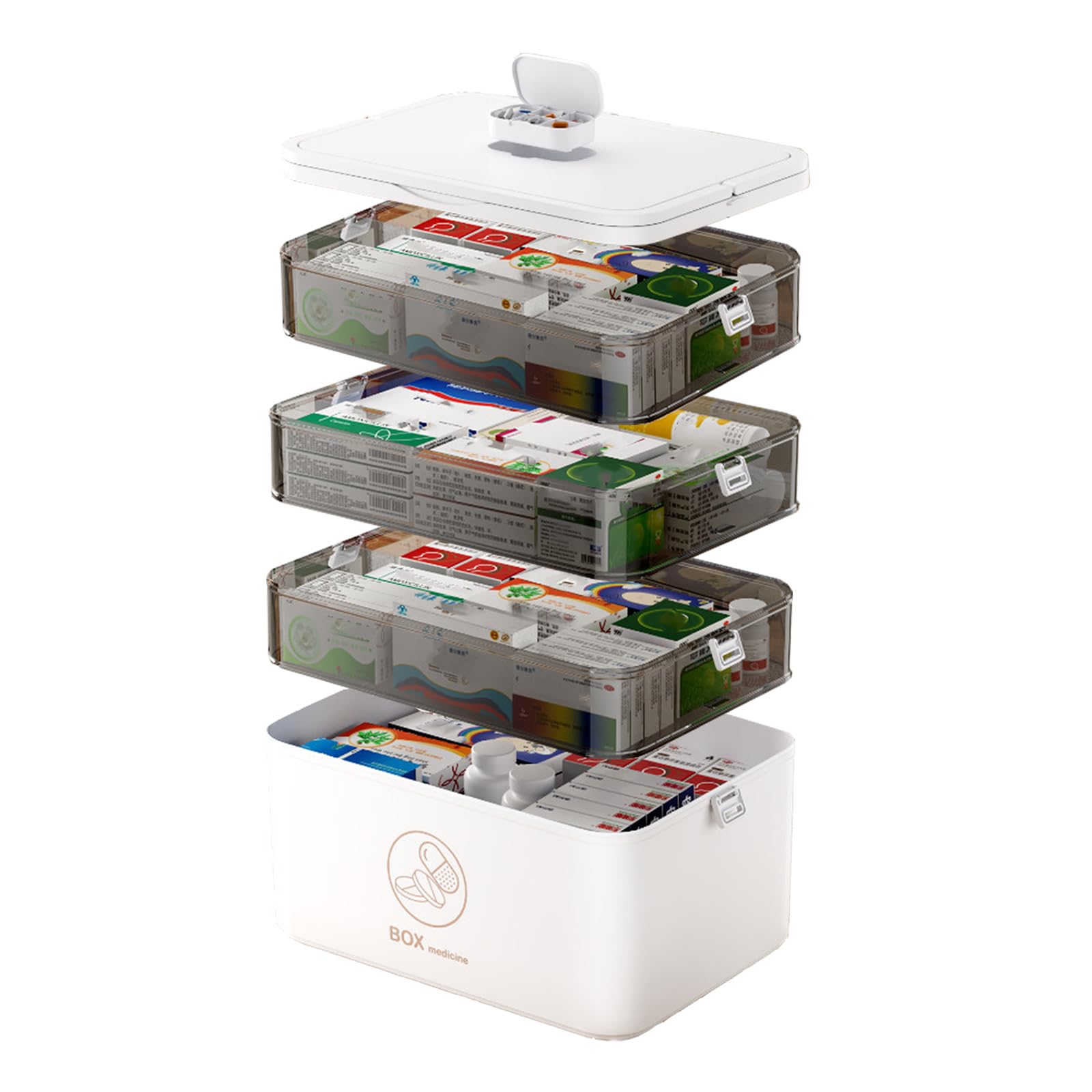 AnRui Caja organizadora de almacenamiento de medicamentos de 3 niveles, de plástico, kit de primeros auxilios vacío, contenedor de