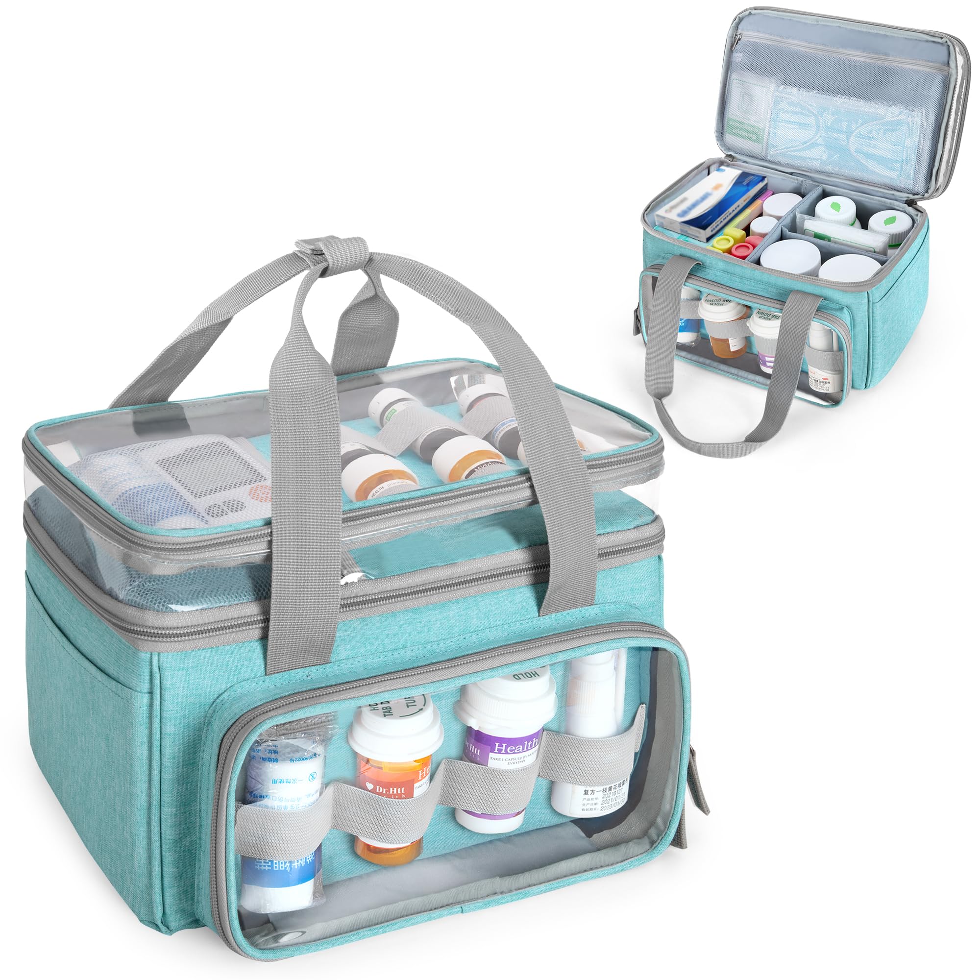 LUXJA Bolsa de medicina de doble capa con compartimento transparente, organizador de botellas de píldoras con divisor desmontable