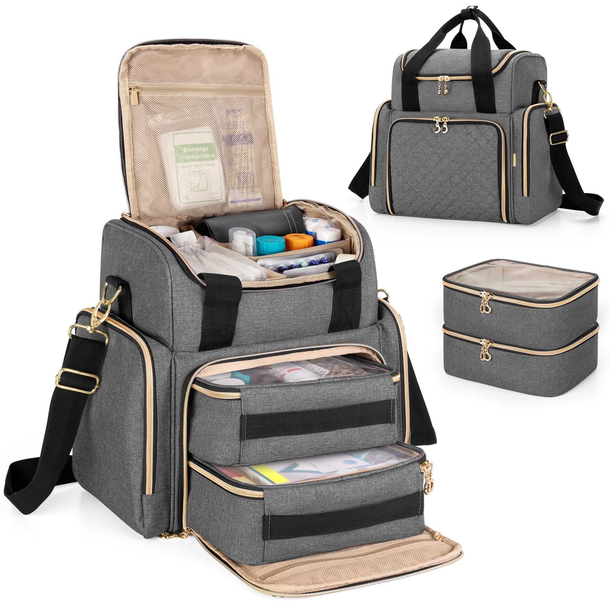 LUXJA Bolsa grande para medicamentos con 2 fundas extraíbles, bolsa de almacenamiento de medicamentos con múltiples secciones de a