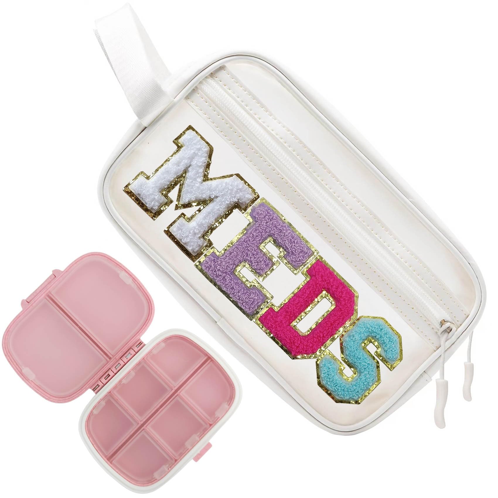 COSHAYSOO Clear MEDS – Bolsa de parche con letras pequeñas para pastilleros, organizador de bolsa de viaje, lindo dispensador de m