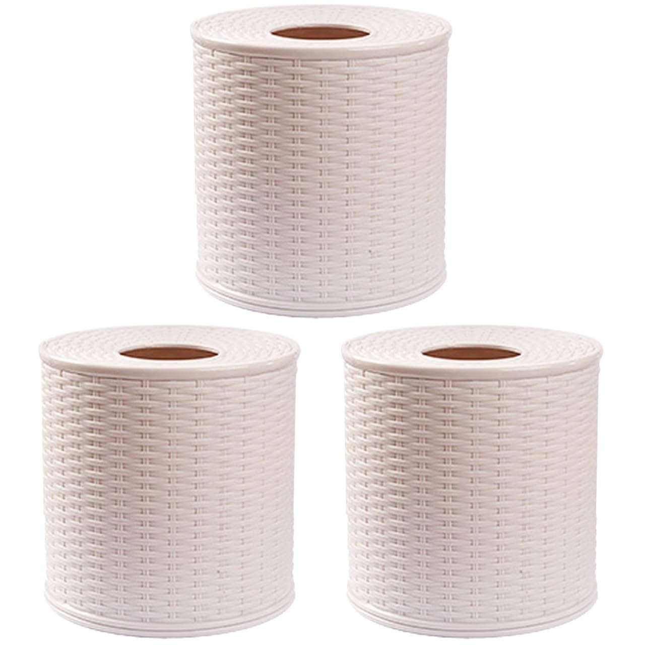 VOSAREA Caja de 3 piezas de cubierta de tejido redondo para almacenamiento de pañuelos, contenedor de papel, dispensador de papel