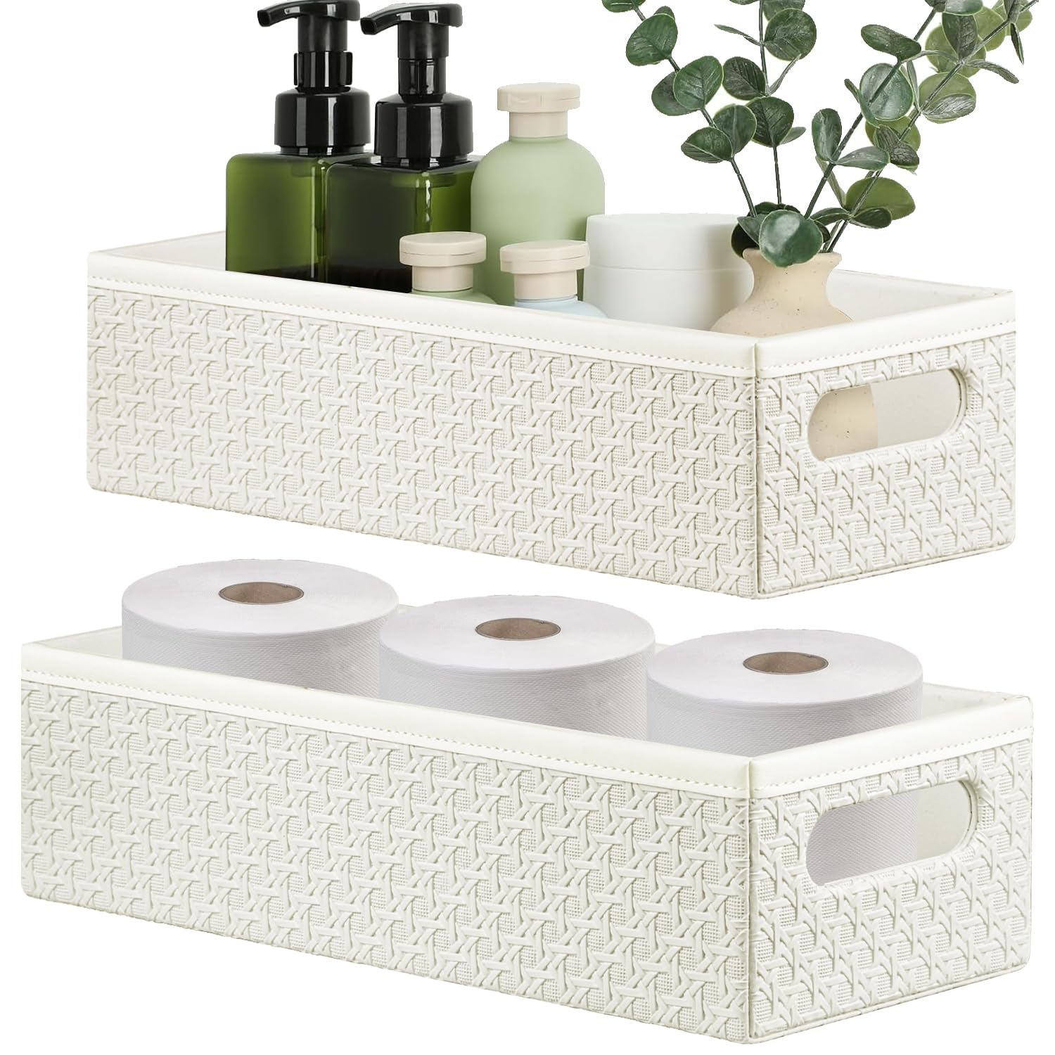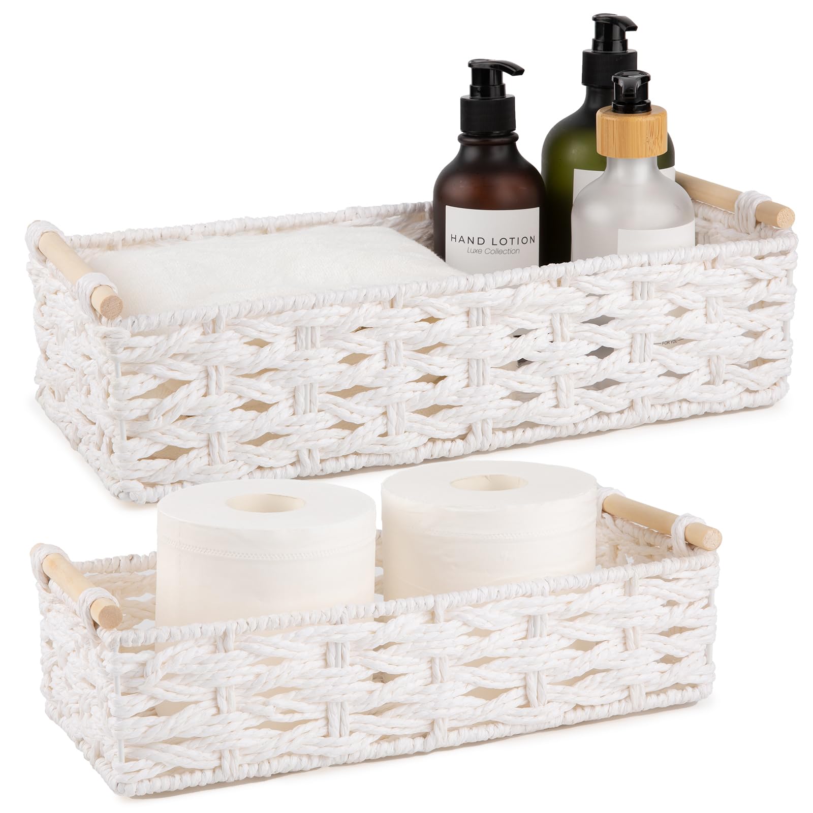 OIAHOMY Cestas de almacenamiento de mimbre hechas a mano con cuerda de papel decorativa para tanque de inodoro, organizador de gab