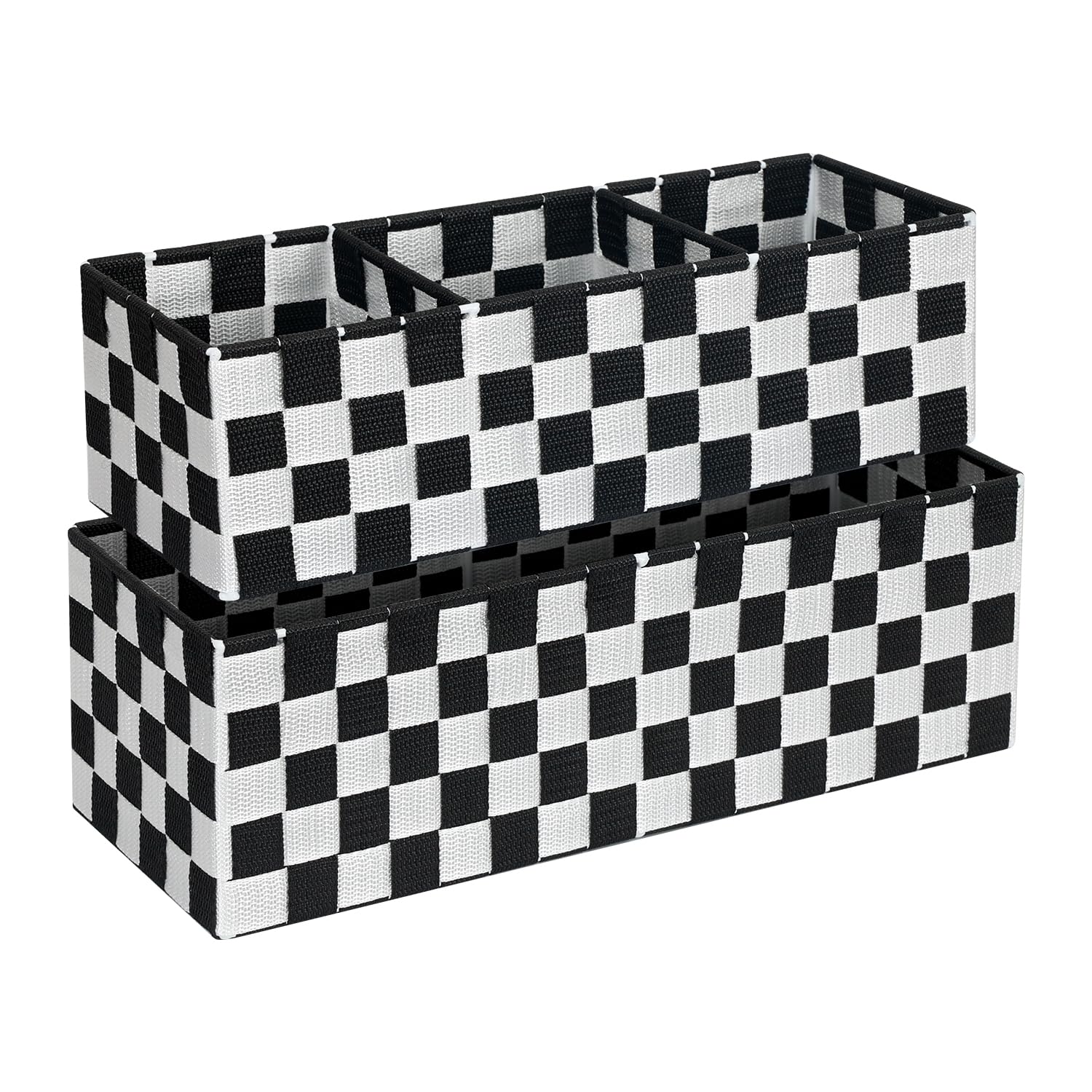 Paquete de 2 cubos tejidos con patrón de cuadros, organizador de escritorio de alambre de metal con cinta de 16 pulgadas, cestas d