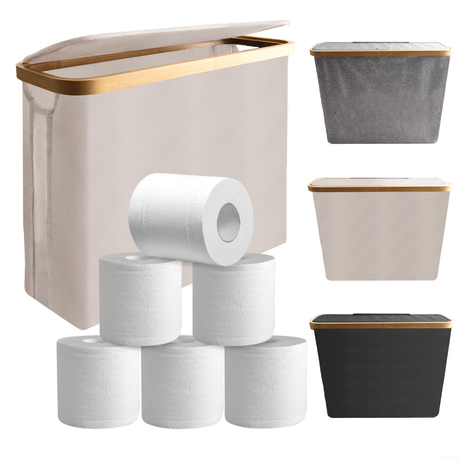 efluky Cesta de papel higiénico de 28 litros, soporte para papel higiénico con tapa para baño, organizador de almacenamiento indep