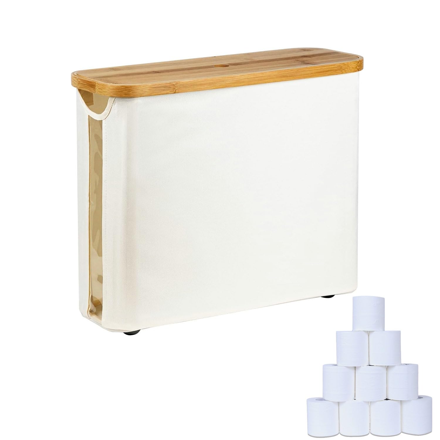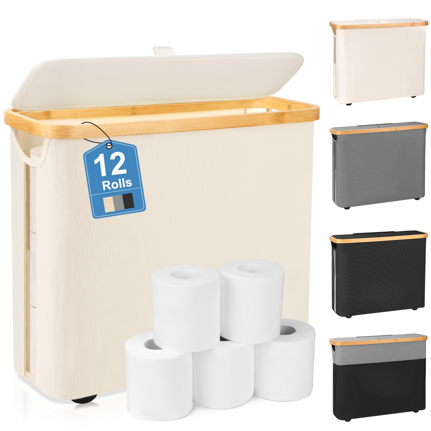 Almacenamiento de papel higiénico con rueda, soporte de papel higiénico de bambú con tapa y asa, organizador de papel higiénico pa