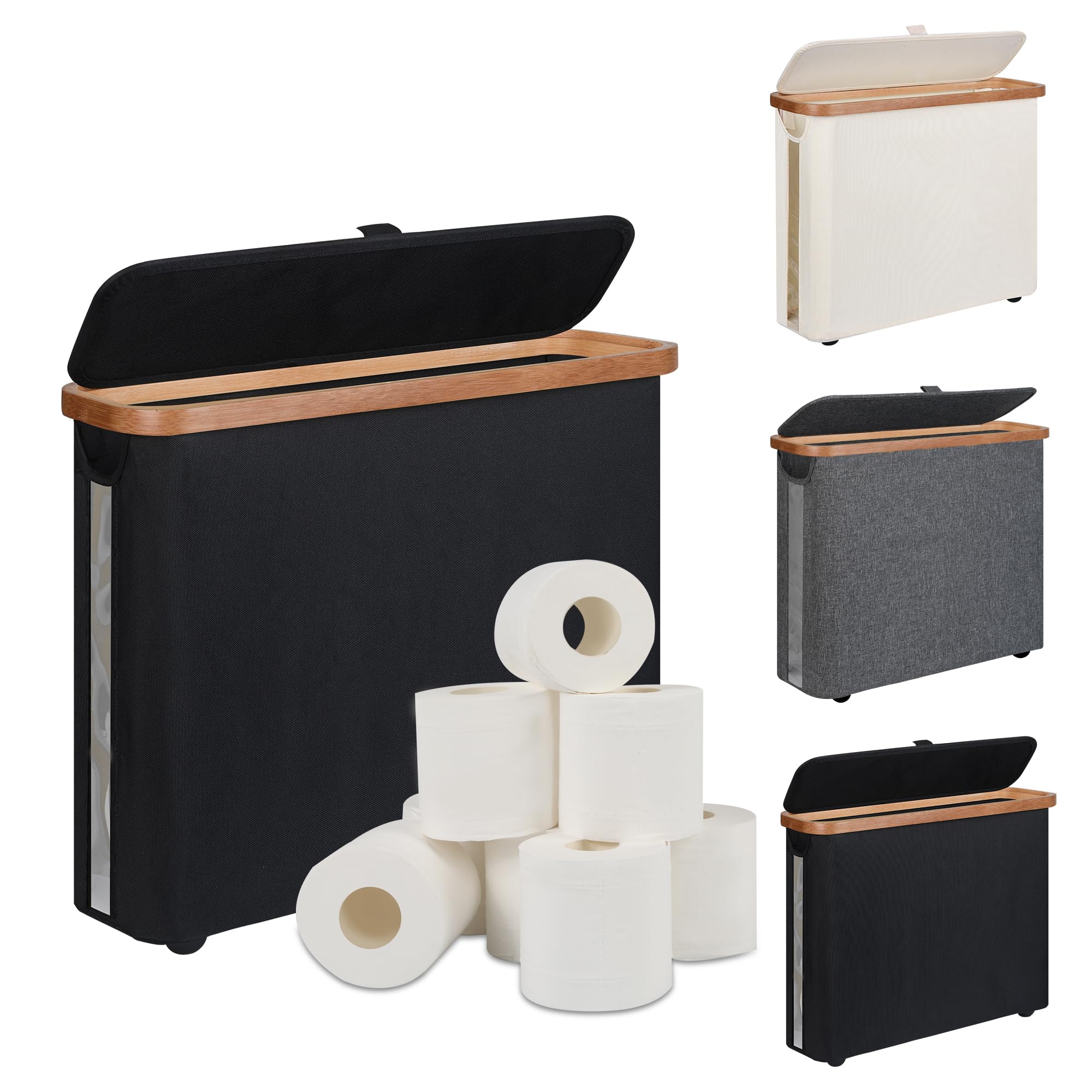 MinBoo Cesta de papel higiénico de bambú – Almacenamiento y organizador, soporte de accesorios de baño – Negro