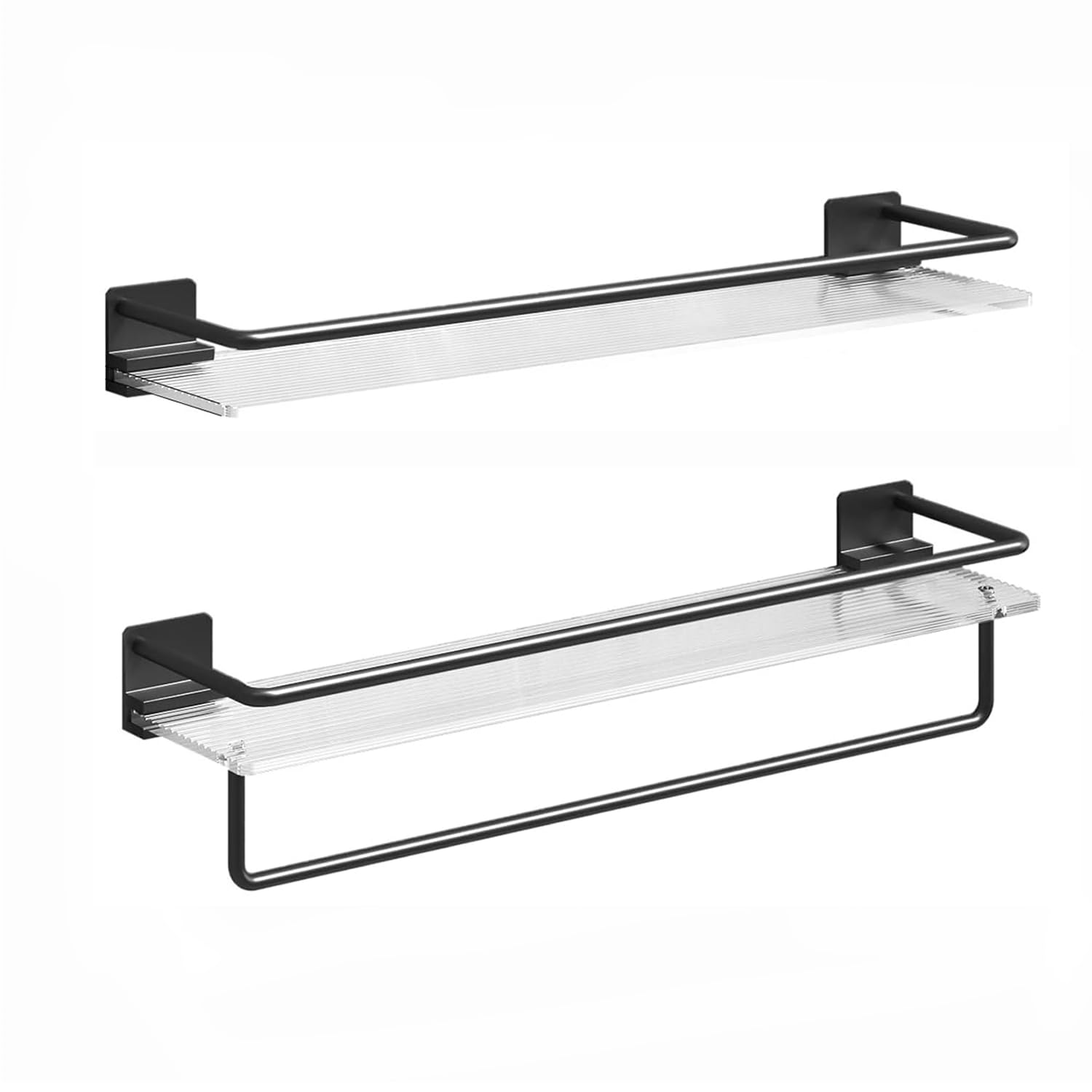 AIJALY Estantes flotantes acrílicos para colgar en la pared con toallero negro, estantes de almacenamiento decorativos, paquete de