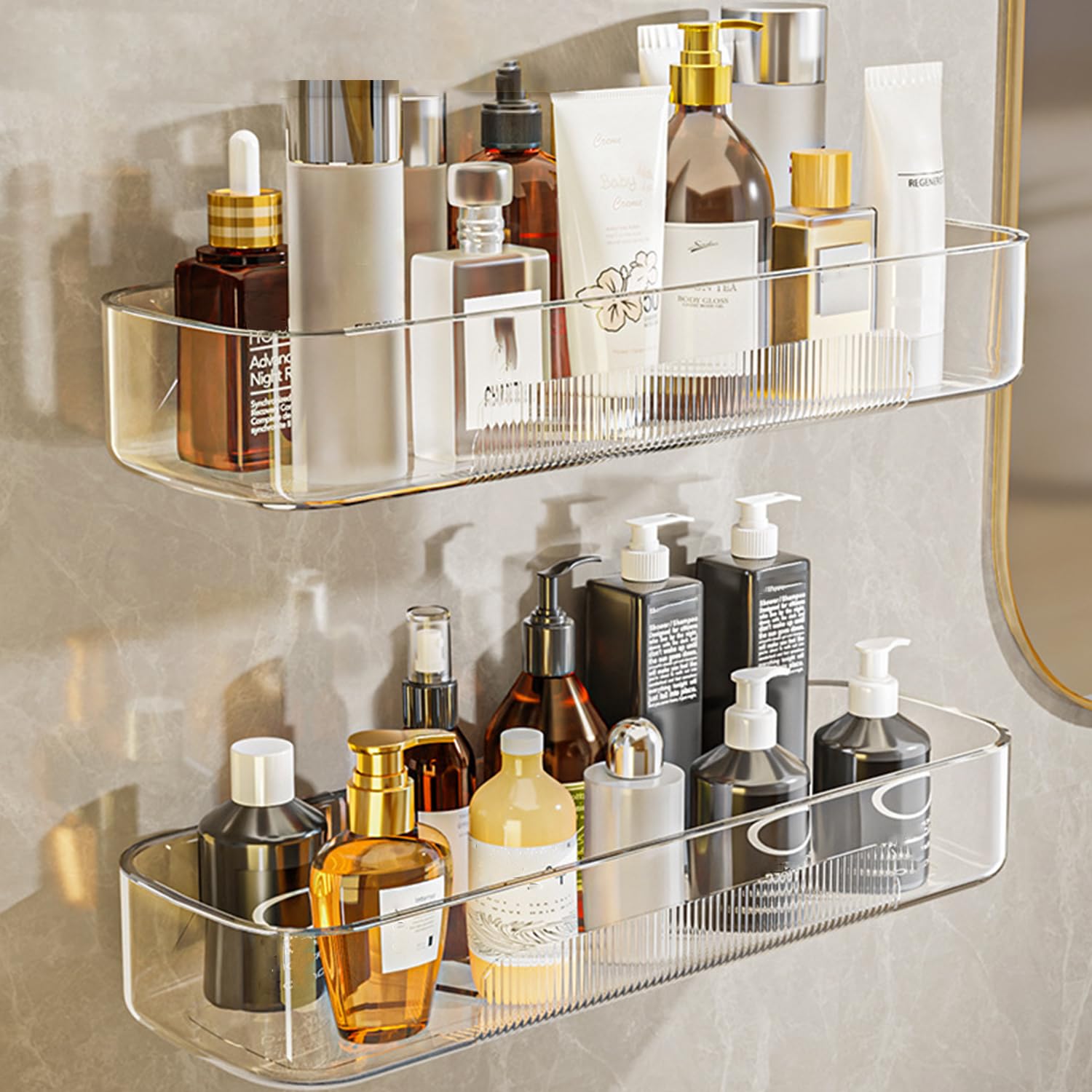 Estantes flotantes de acrílico para baño, juego de 2, estantes montados en la pared adecuados para lavabo, cocina, lavandería, gra