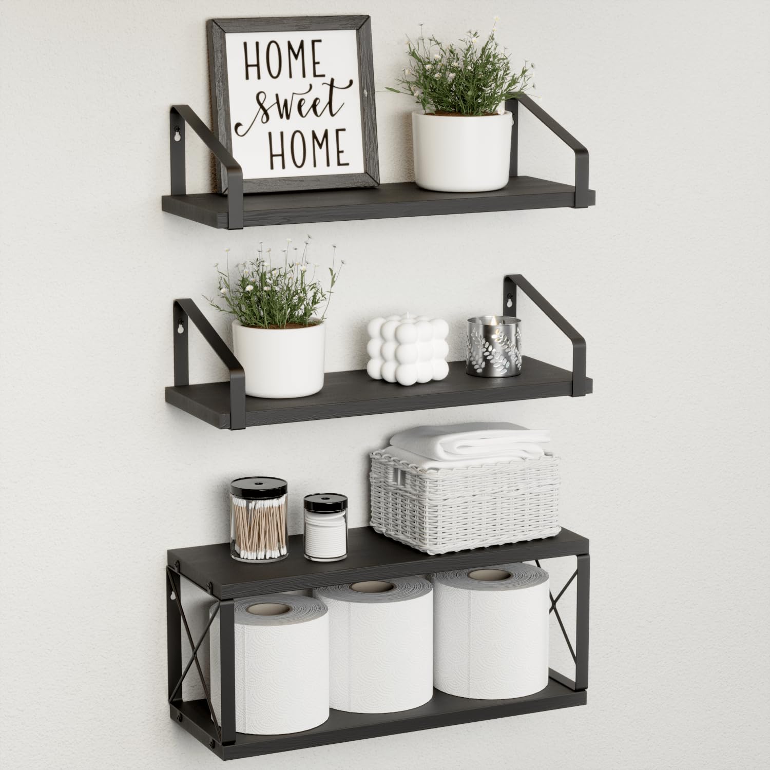 RICHER HOUSE Estantes flotantes de baño, estantes de baño sobre el inodoro, estantes negros para decoración de pared de baño, esta