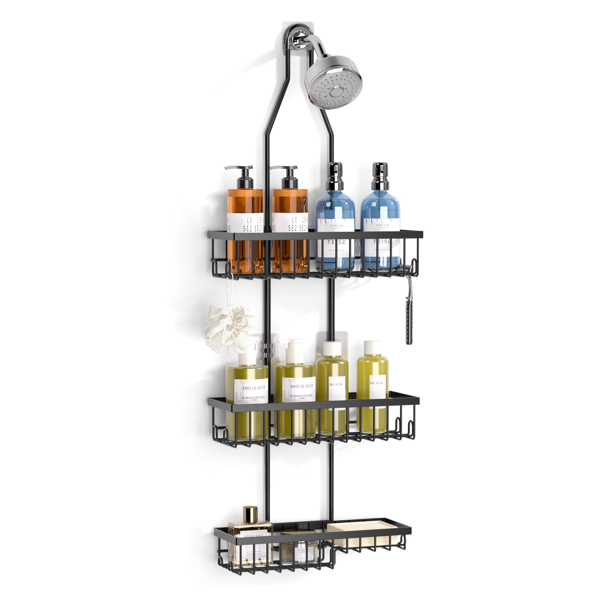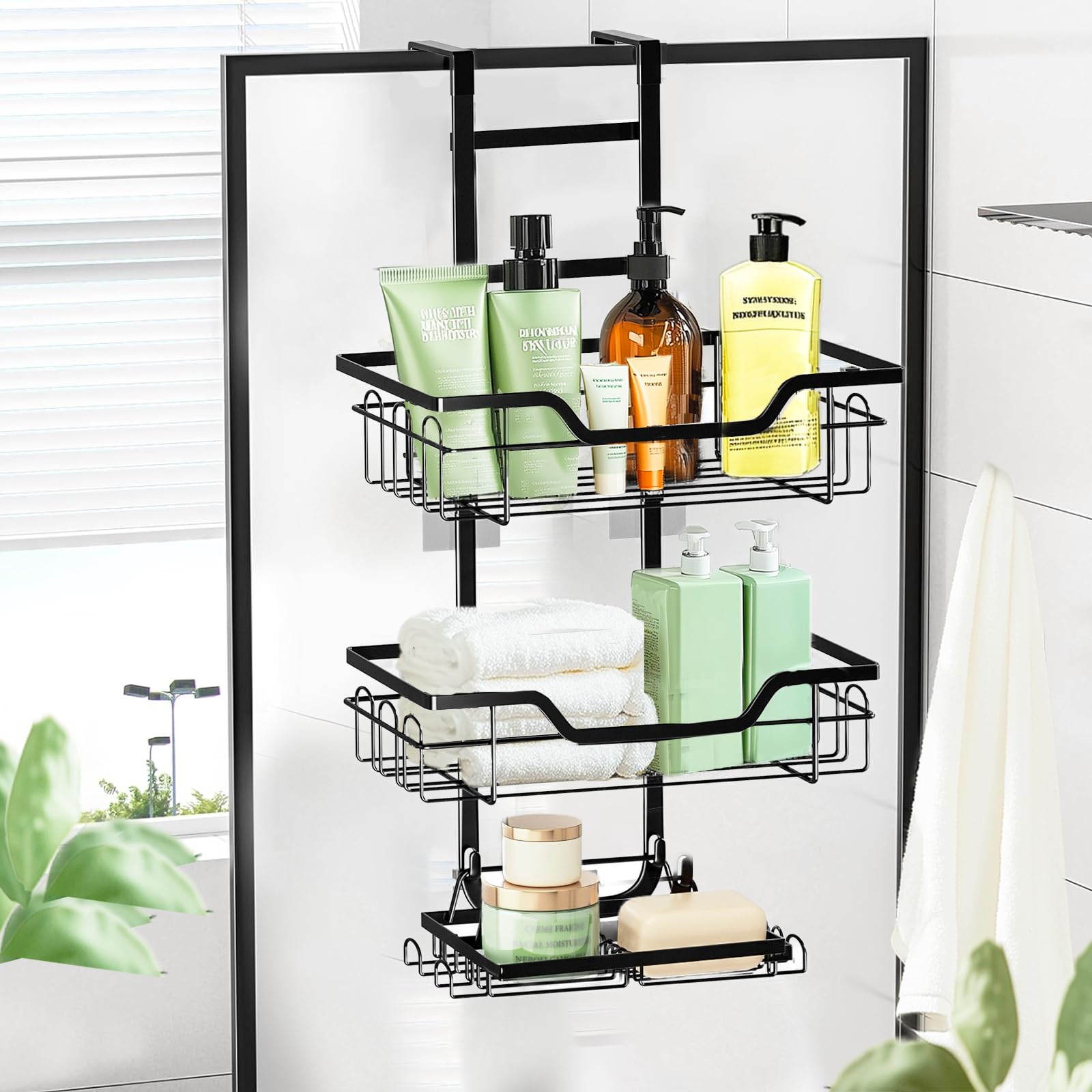 Organizador de ducha de 3 niveles para colgar sobre la puerta, organizador de baño colgante sin perforaciones, cesta colgante de p