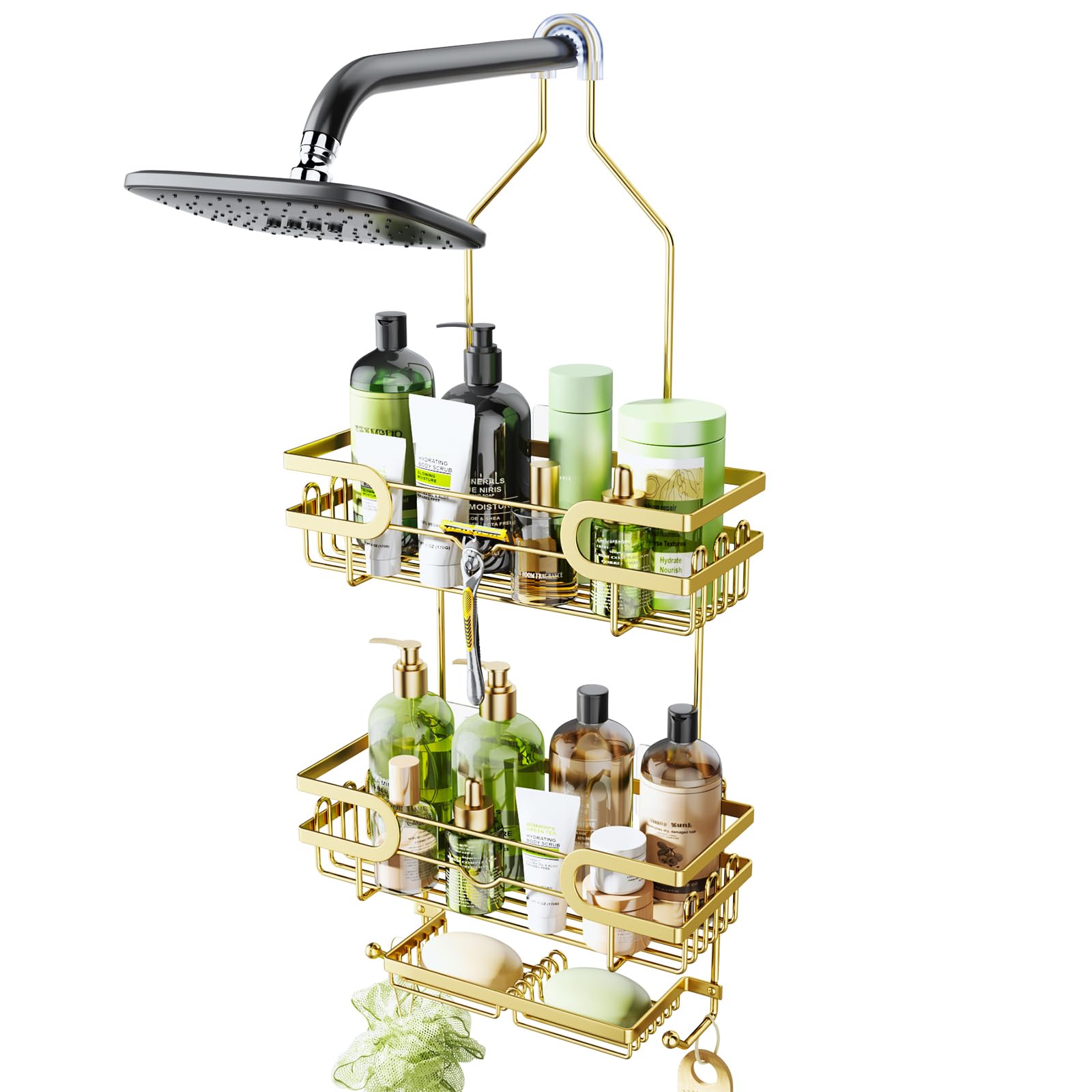 HapiRm Organizador de ducha sobre cabezal de ducha con 2 soportes para jabón, organizador de baño colgante a prueba de óxido e imp