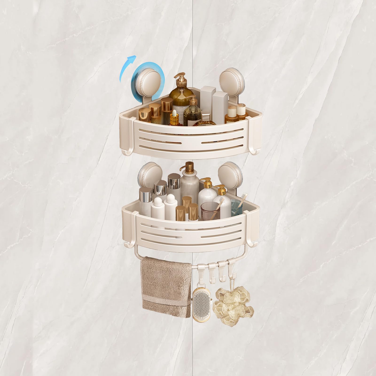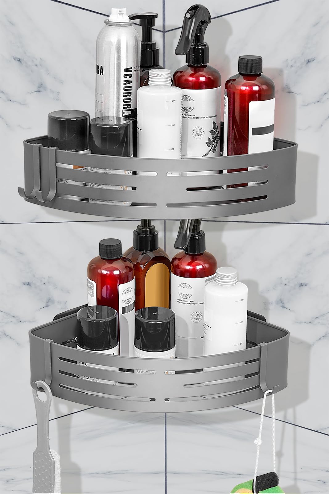 Organizador de ducha esquinero sin perforaciones, estante de ducha esquinero, antióxido, organizador de ducha colgante, doble alma