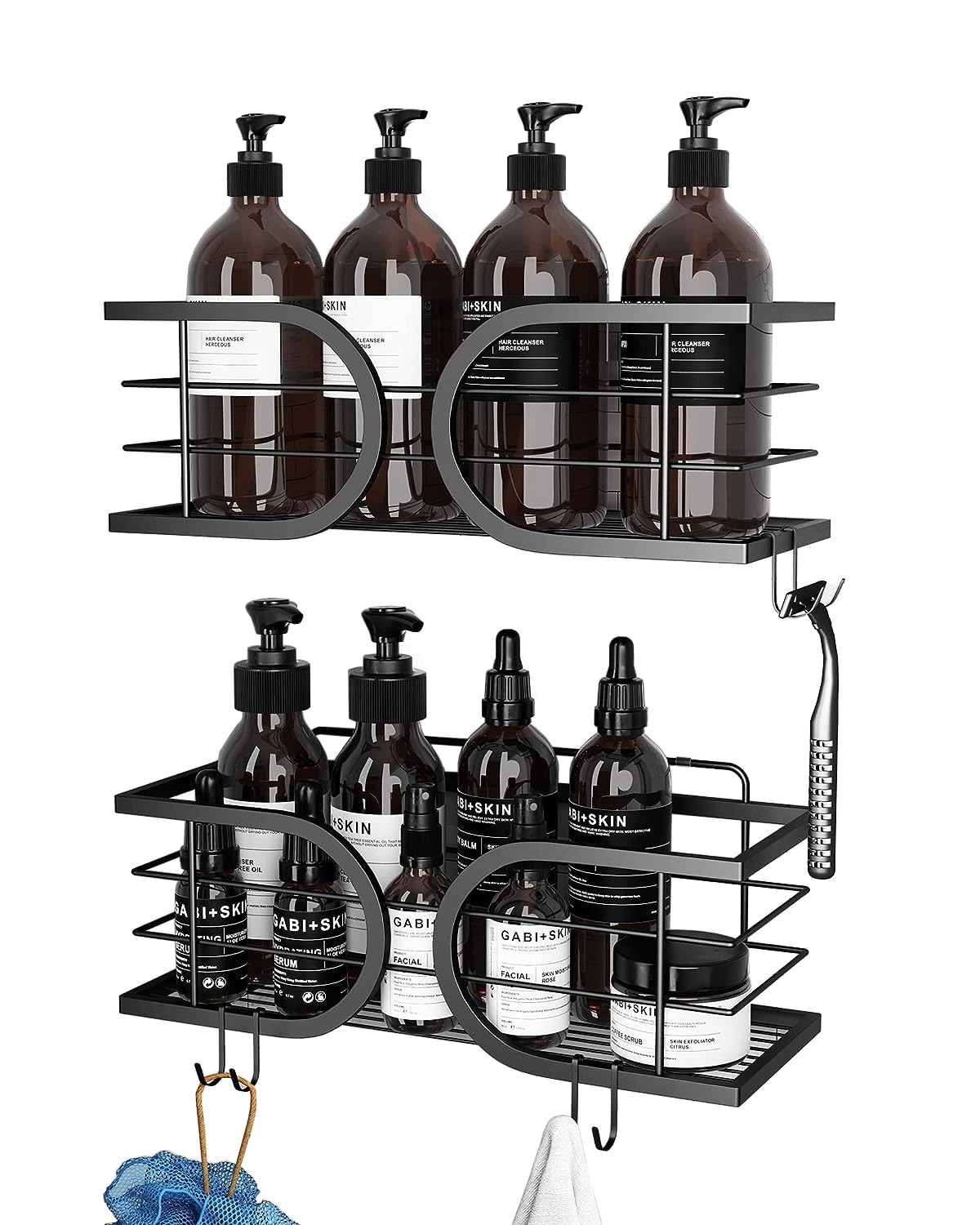 TZAMLI Organizador de ducha con soporte para maquinilla de afeitar y gancho, estante autoadhesivo sin perforaciones, organizador d