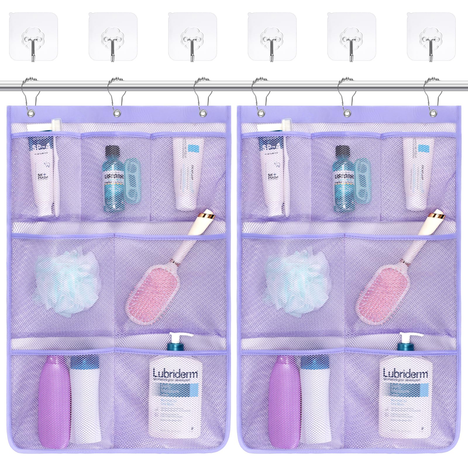 F-color Organizador de ducha de malla para colgar, organizador de ducha de secado rápido, bolsa organizadora de baño con 7 bolsill