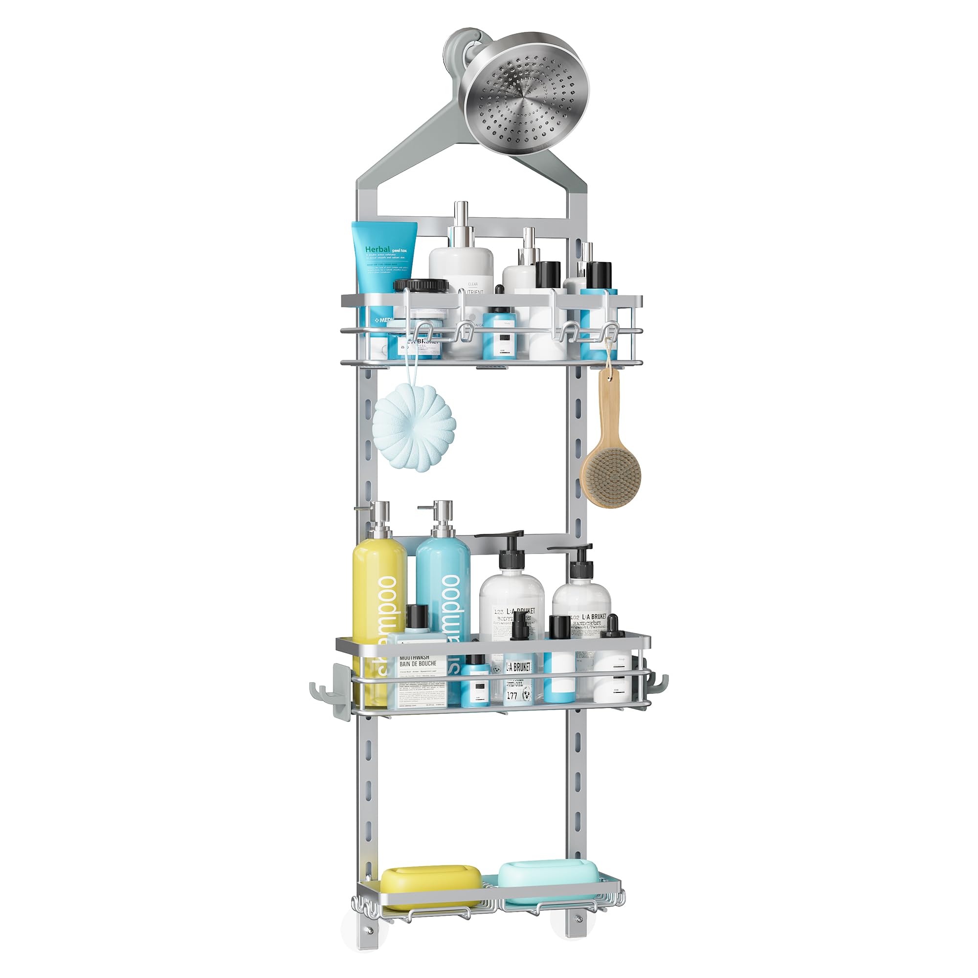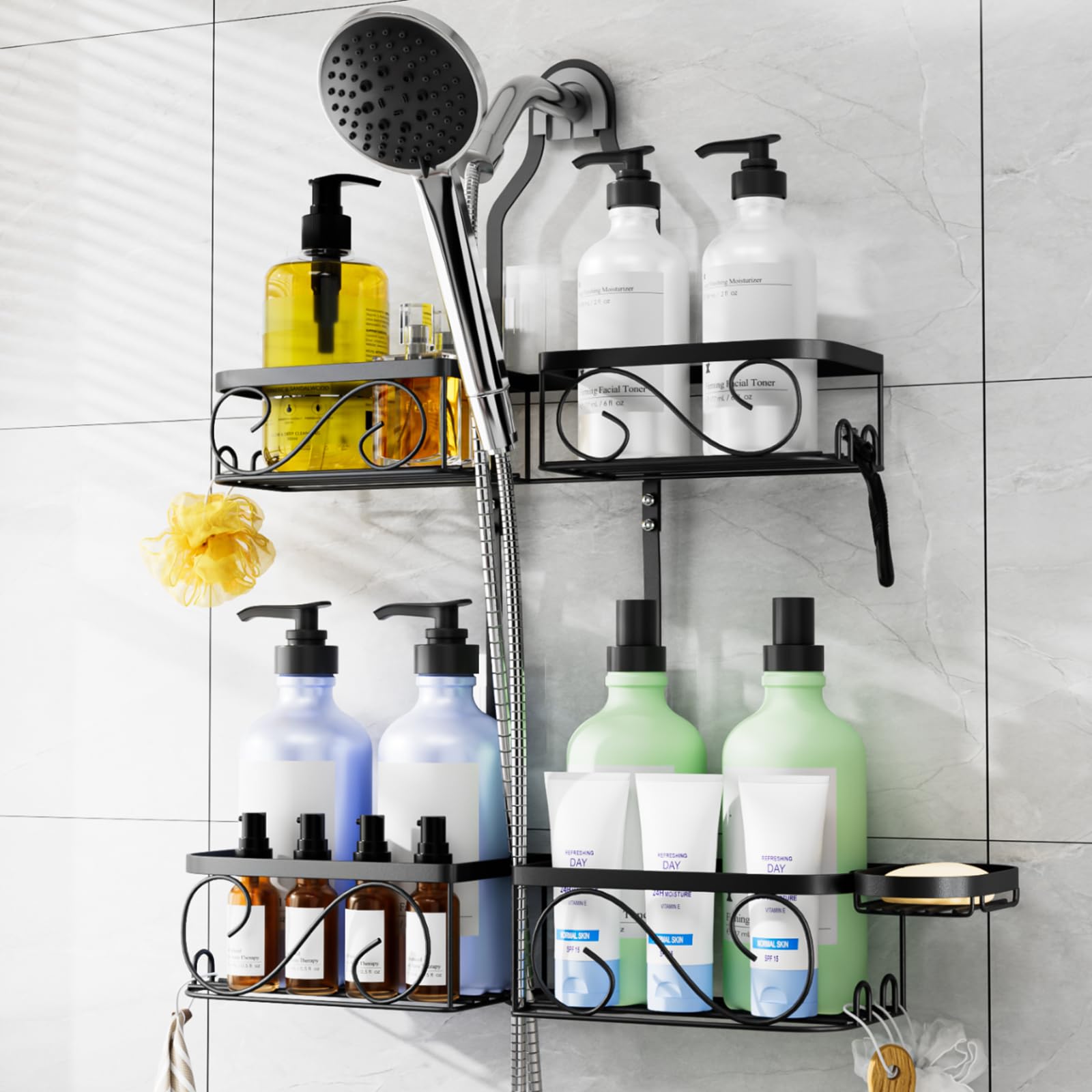 Nieifi Organizador de ducha colgante ajustable con soporte para jabón, organizador de cabezal de ducha con ganchos, estante para j
