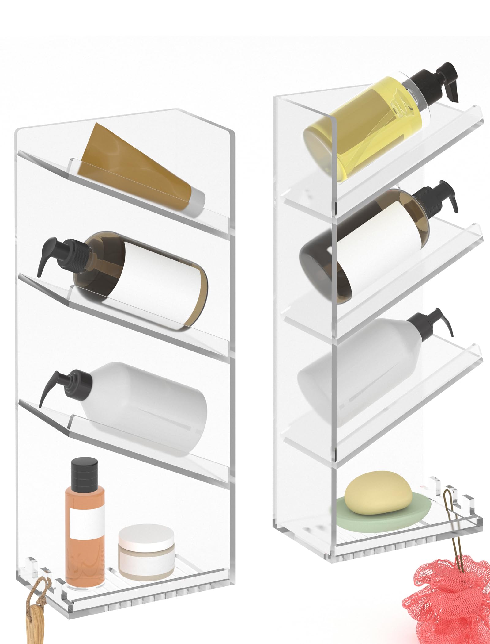 Organizador de ducha acrílico adhesivo con guía de agua, paquete de 2 organizadores transparentes, estantes montados en la pared a