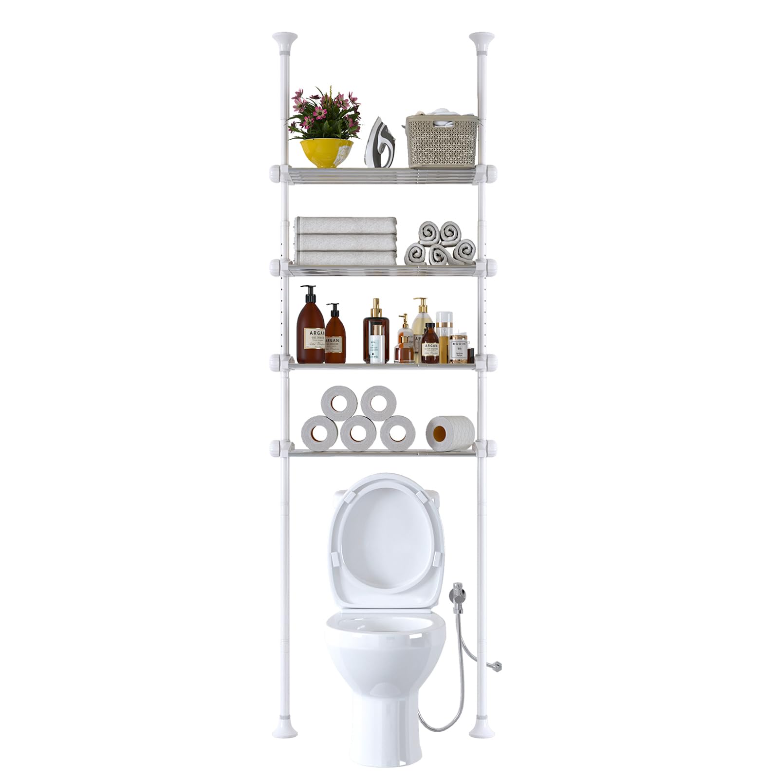 Estante de almacenamiento de 4 niveles sobre el inodoro, organizador de baño ajustable de 4.5 a 9.5 pies, estantes de metal resist