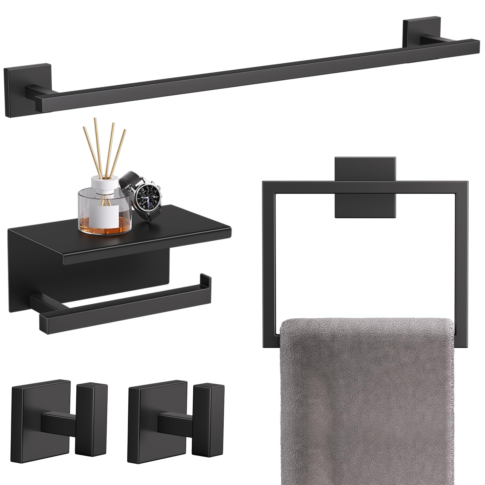TQKAG Juego de 5 piezas de accesorios de baño negro mate de 23.6 pulgadas SUS304 de acero inoxidable barra de toalla montado en la