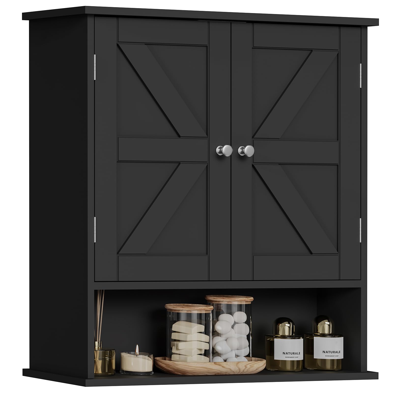Armario de pared de baño, armario de baño con puertas de granero y estante ajustable, gabinete de almacenamiento sobre el inodoro,