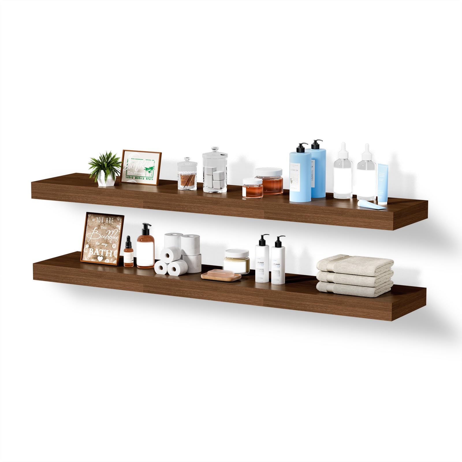 Homeforia Estantes flotantes de baño de nogal, estante flotante pequeño de madera real maciza de 16 pulgadas para montar en la par