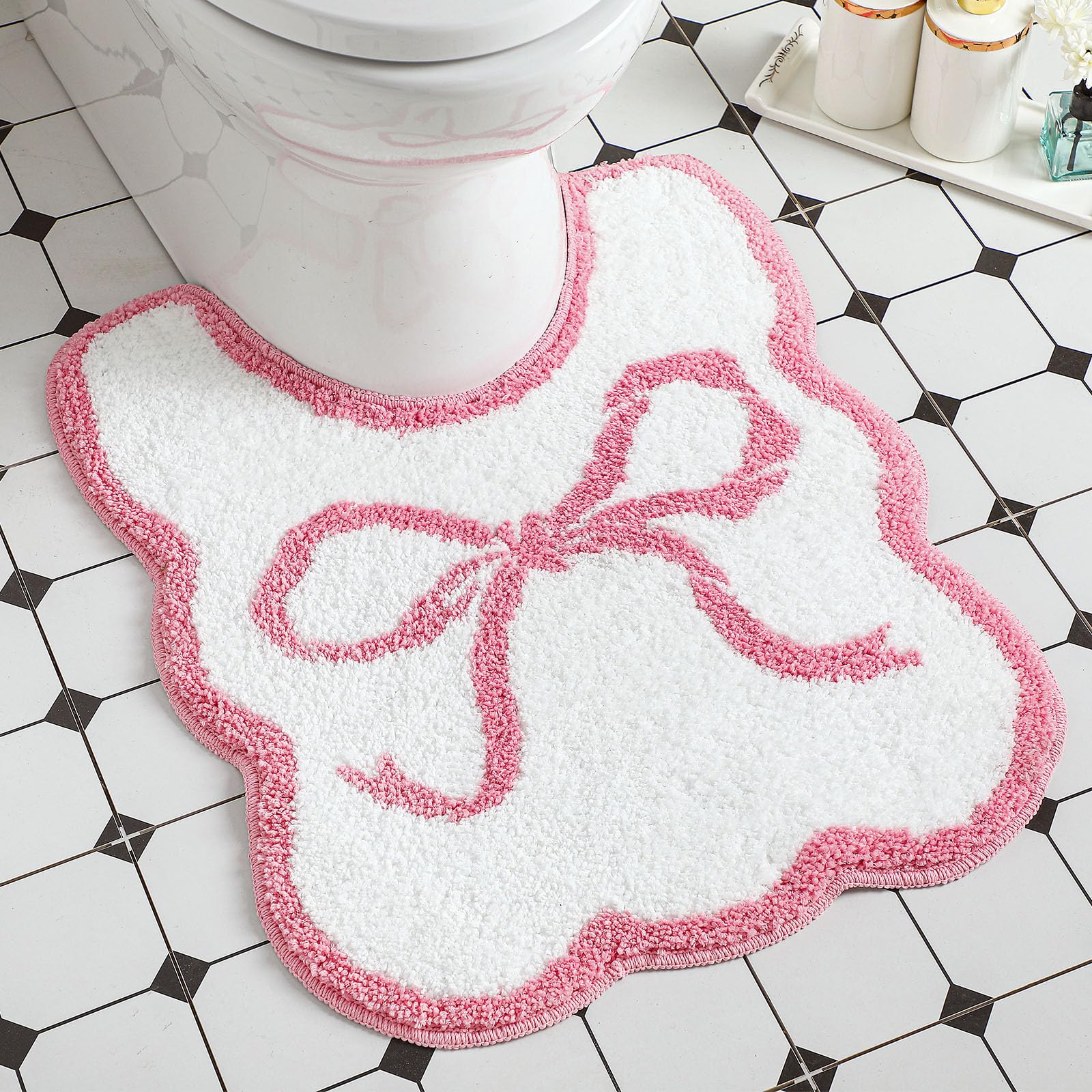 Alfombra de baño con lazo en forma de U, de lujo, festoneada, antideslizante, bonita microfibra suave, alfombra de baño de felpa s