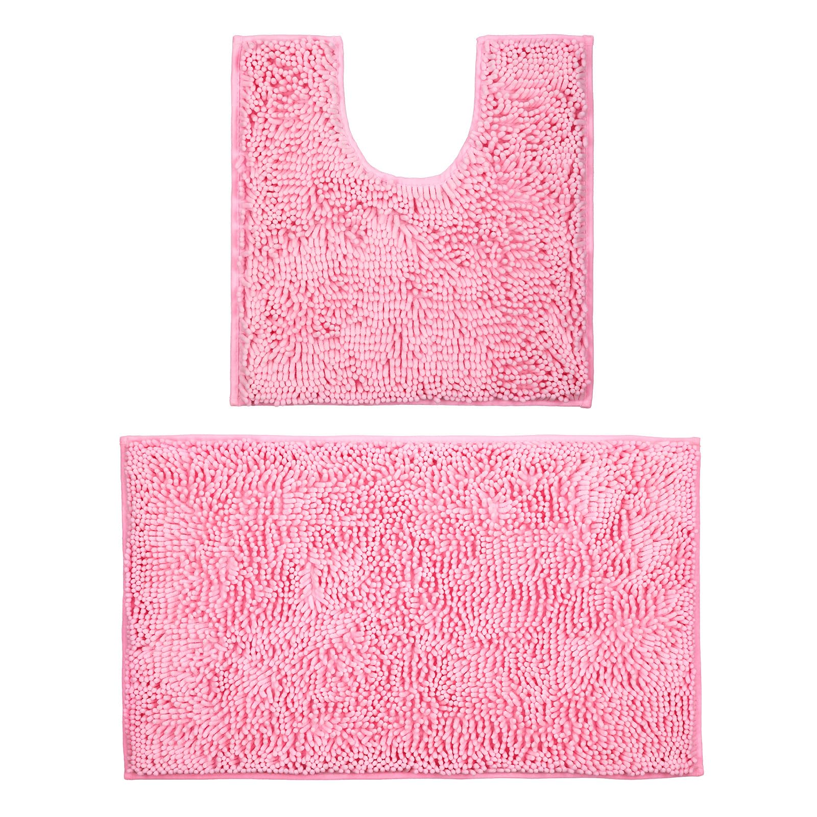 Juego de 2 alfombras de baño de color rosa suave y bonito tapete de baño en forma de U, juego de alfombras de baño de felpa de mic