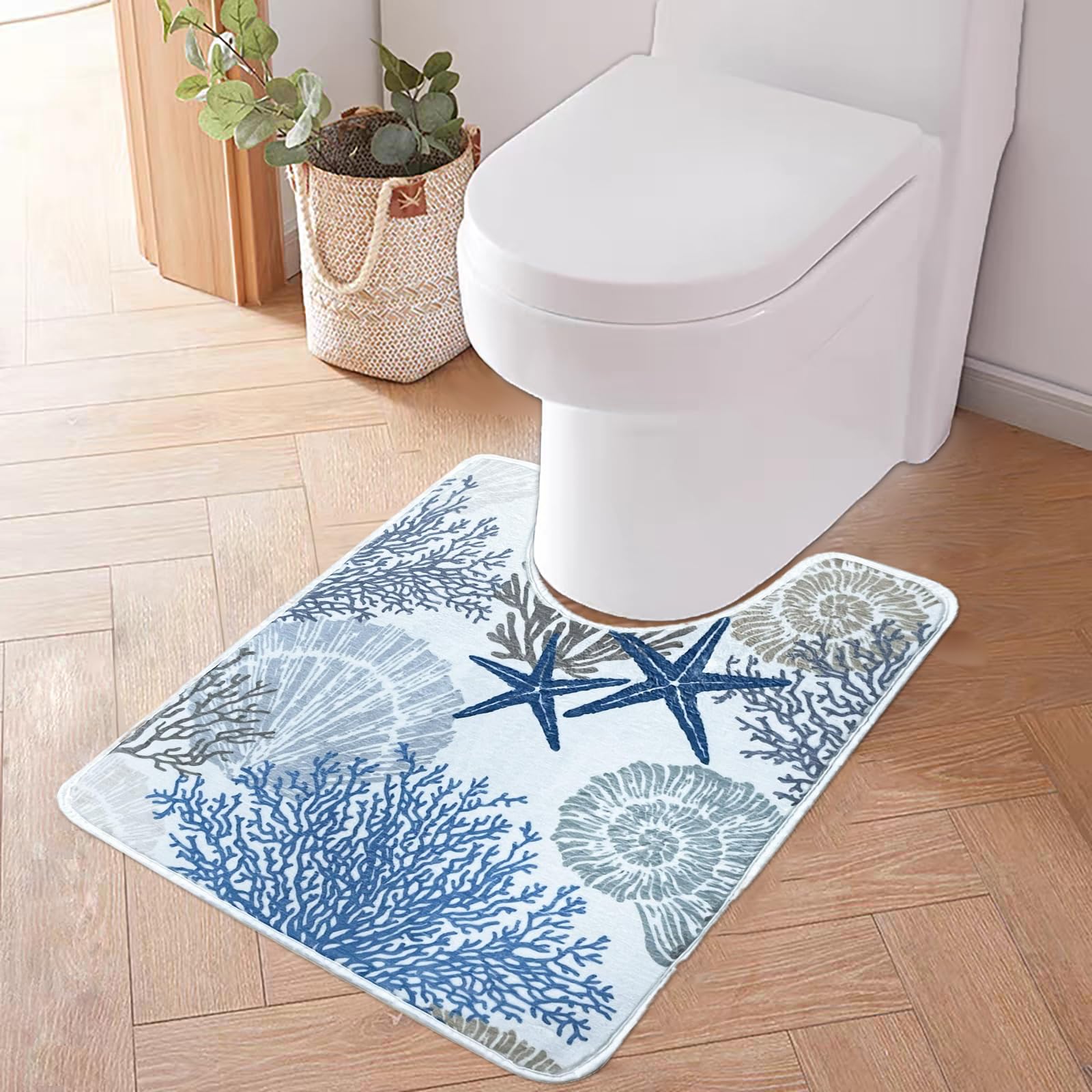 Blue Coastal – Alfombras para inodoro en forma de U lavables de 24 x 20 pulgadas, tapetes de baño de contorno festoneado para baño