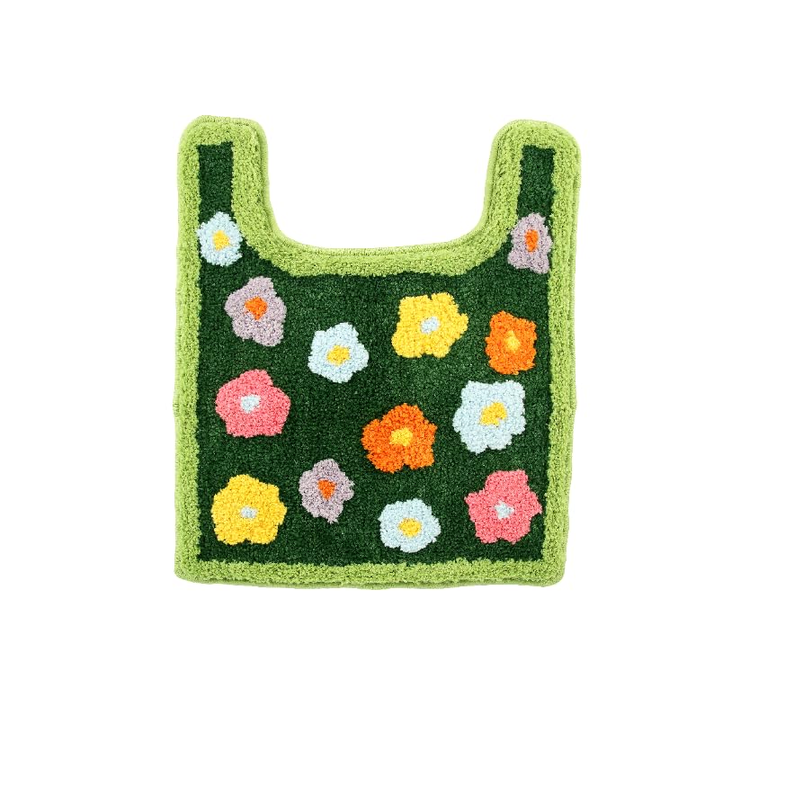 Alfombra de baño de musgo verde: tapete de inodoro en forma de U con material de baño suave, tapete antideslizante y lavable para