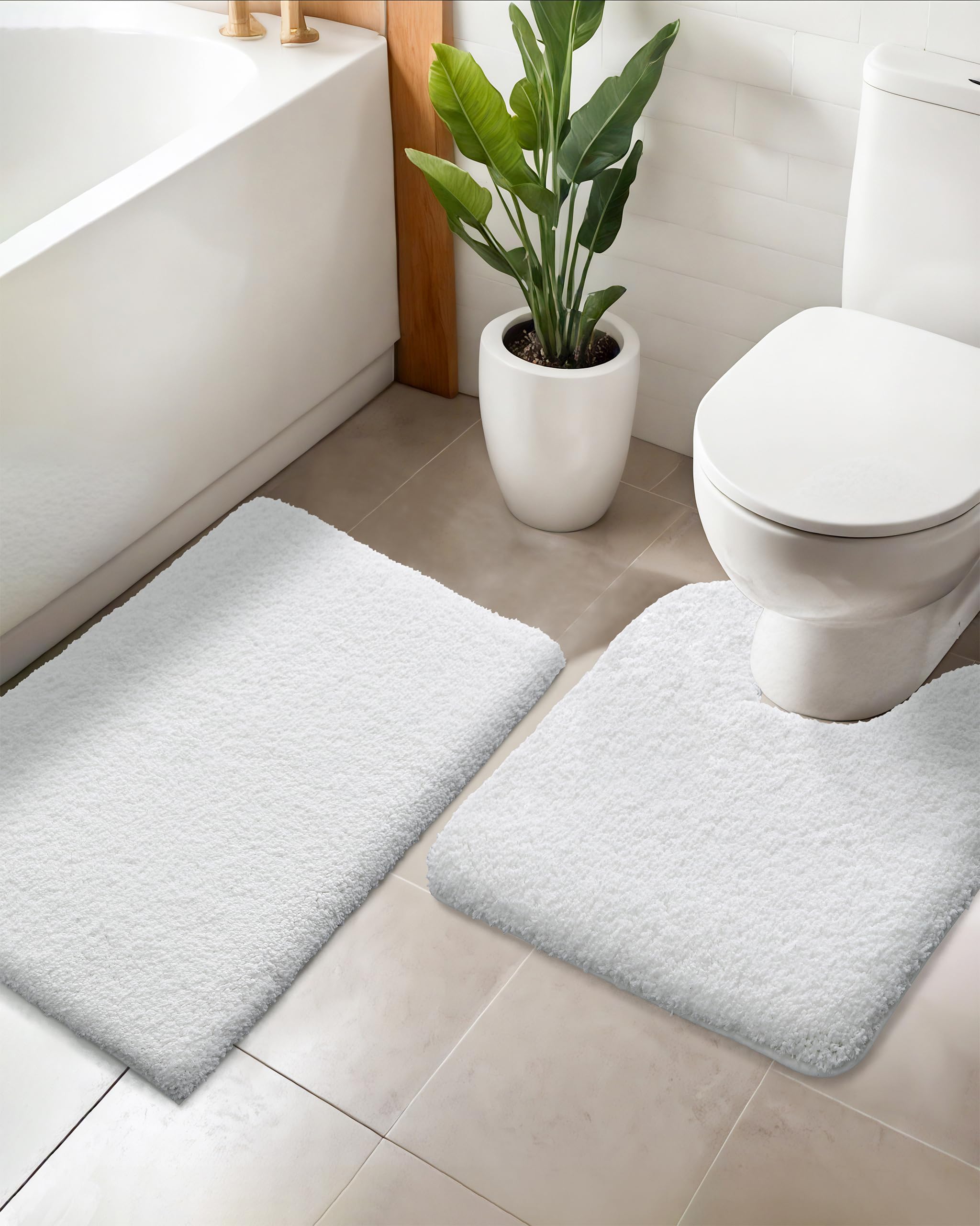 Yimobra Juego de 2 alfombras de baño esponjosas con forma de U, alfombra de baño suave y antideslizante, alfombra de ducha de felp