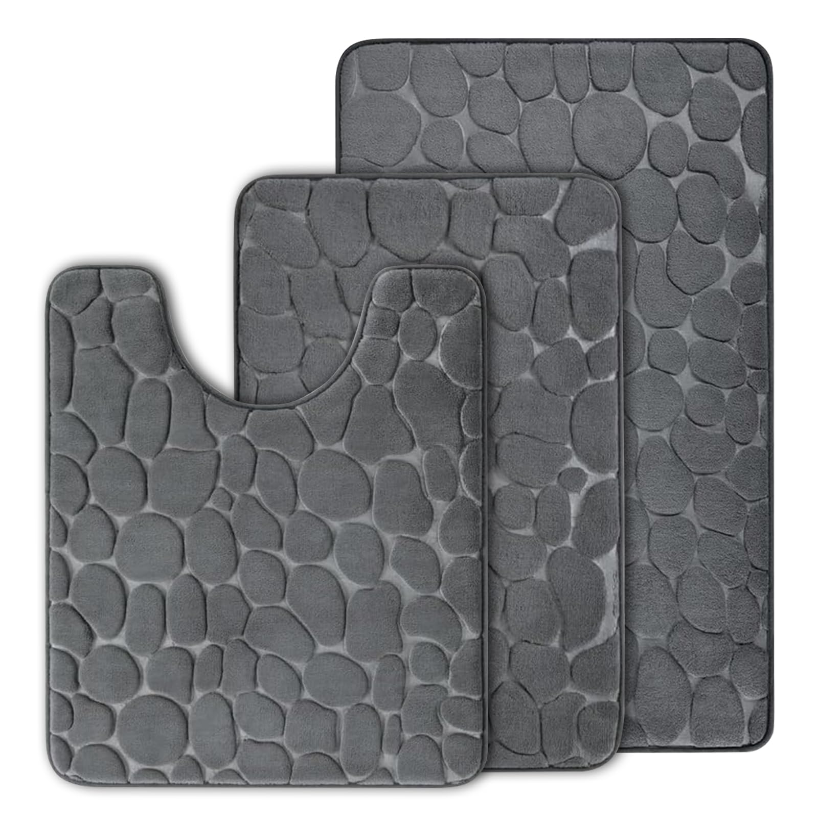 JOYART Juego de 3 alfombras de baño de espuma viscoelástica de adoquines, tapetes de inodoro, alfombras absorbentes antideslizante