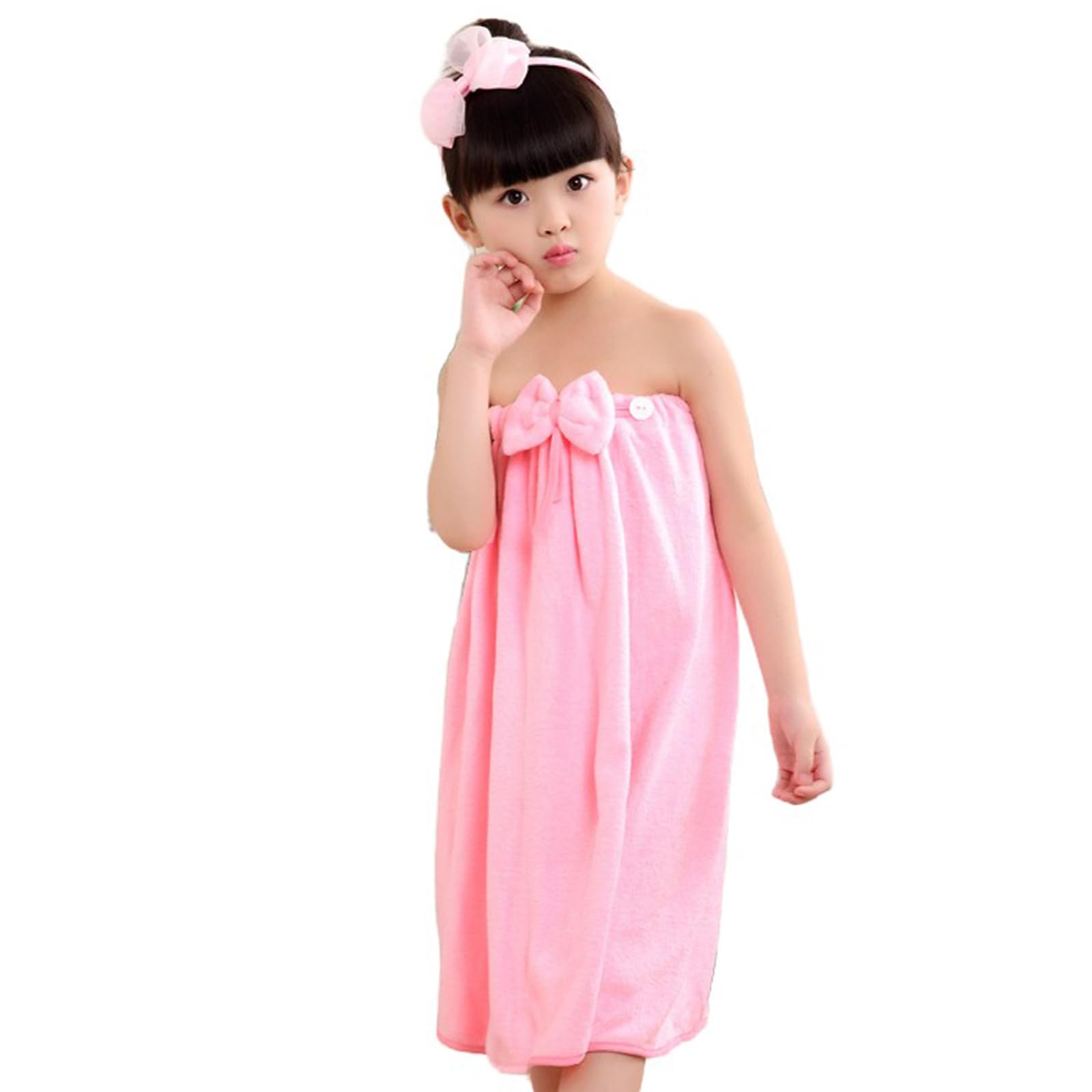 PURFUN Vestido de toalla de baño suave para niñas con lazo para 3.9-4.9 pies, toalla de playa elástica absorbente de agua para niñ