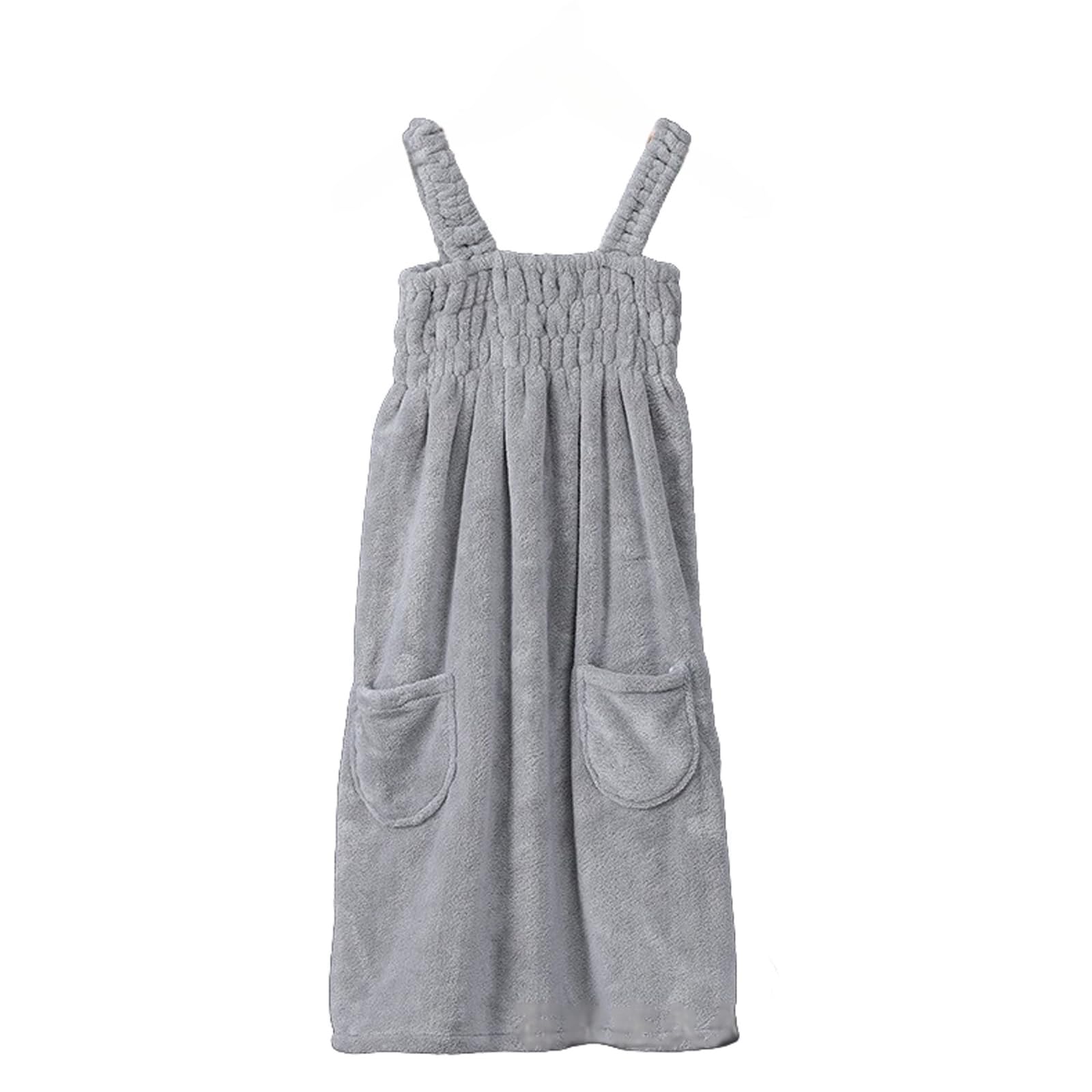 GREUS Toalla de baño para mujer, forro polar coral, absorbente, con correas, bolsillos, bata de baño de secado rápido para spa, sa
