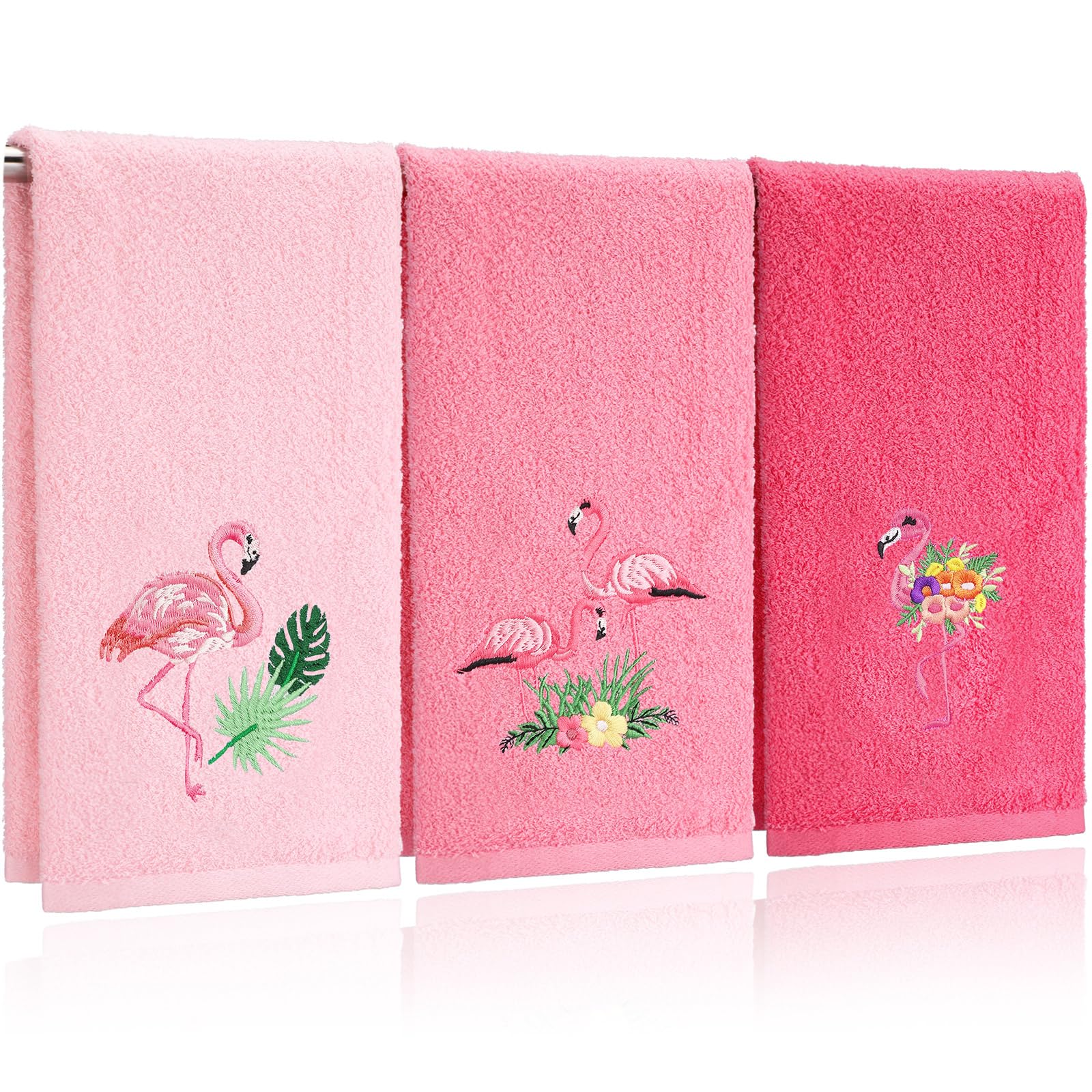 Toallas de mano con diseño floral de flamenco rosa, decoración de baño, 14 x 29 pulgadas, bordadas, decorativas, lindas flores de