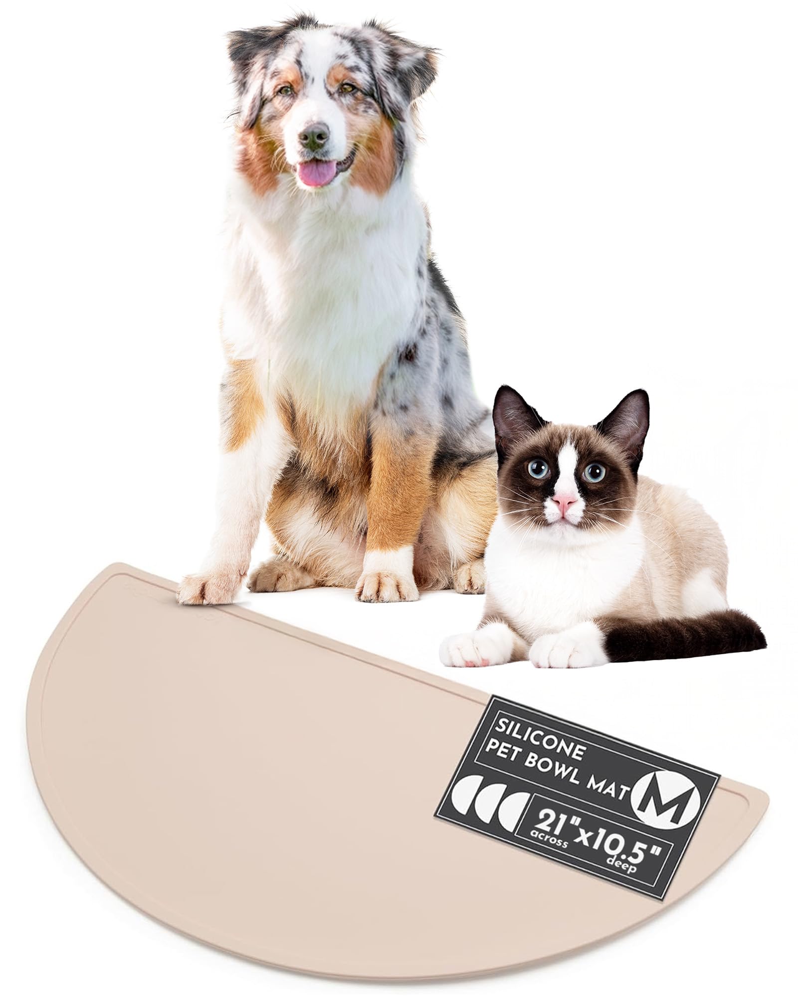 Tapete de comida para perros, extra grande de 40 x 28 pulgadas, tapete de silicona para alimentación de mascotas con borde elevado