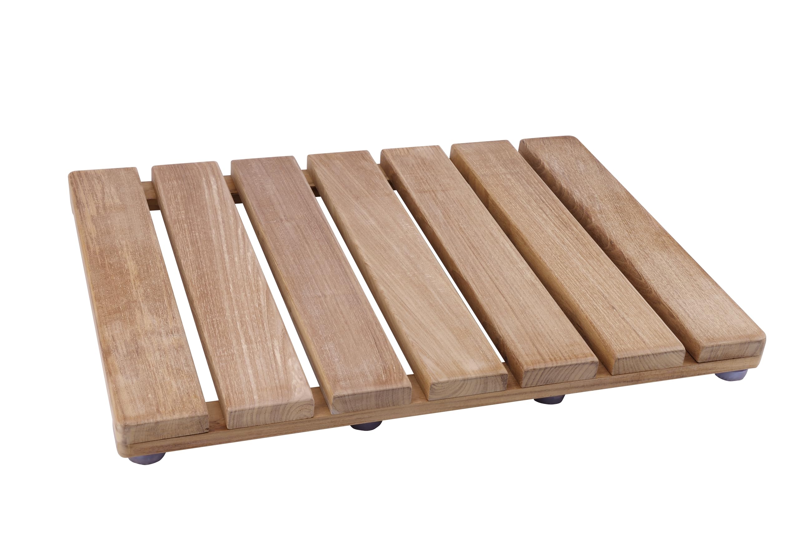 Tapete de baño de madera de teca natural, 20.67 x 14.76 pulgadas, pies de goma antideslizantes, tapetes de madera de primera calid