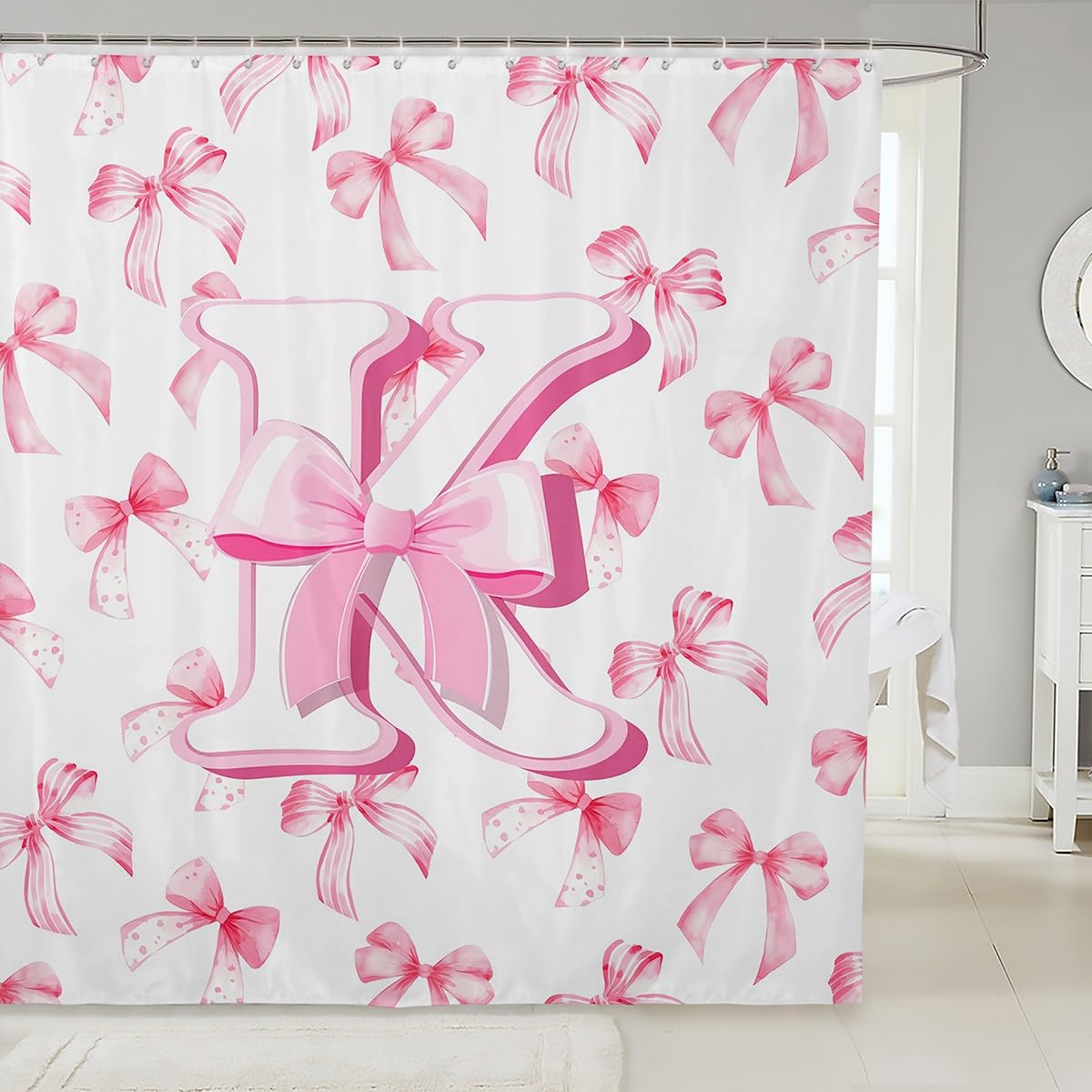 jejeloiu Cortina de ducha con lazo rosa para niños y niñas, 72 x 72 pulgadas, cortina de baño con monograma, inicial personalizada