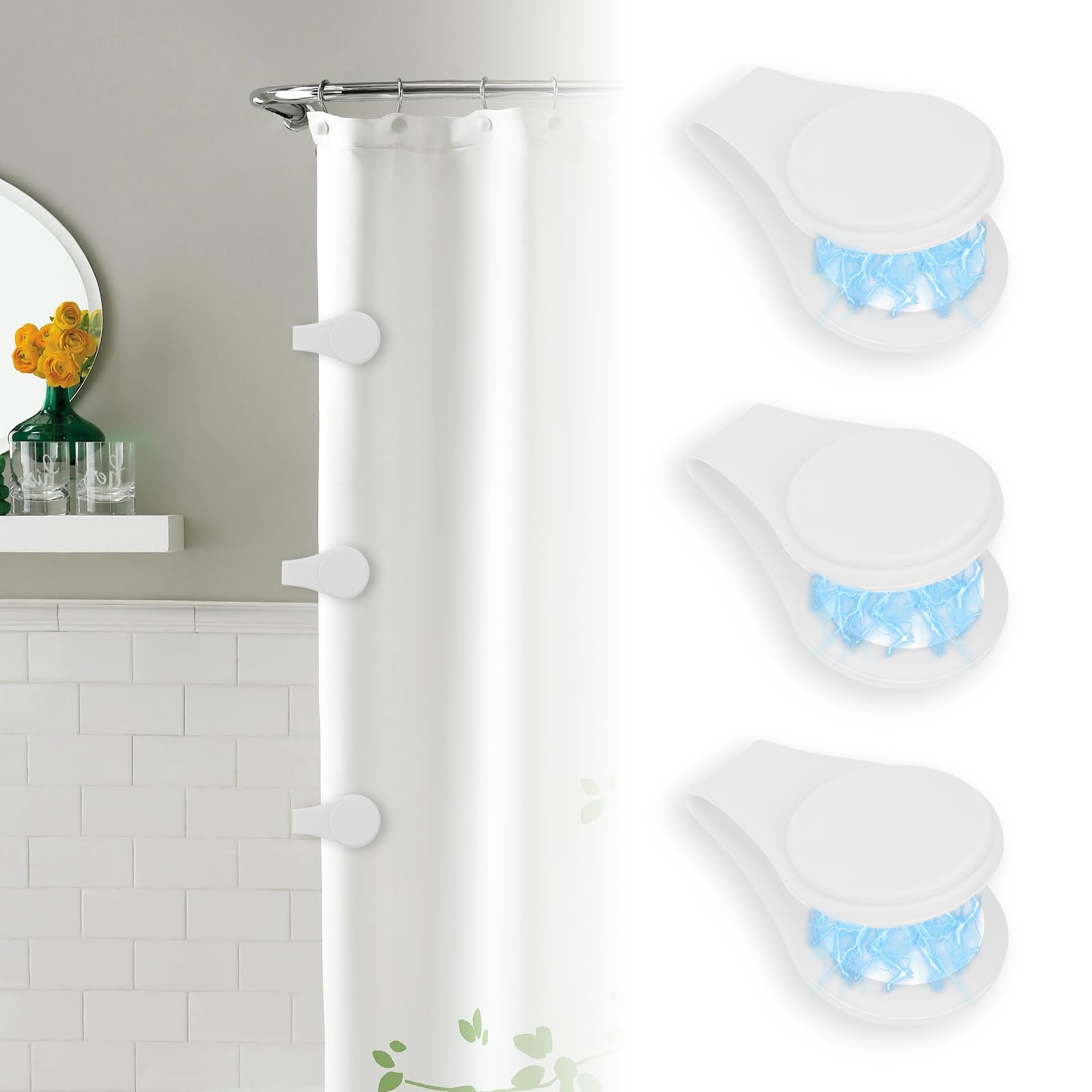 Magnetic 3 Pcs Silicone Shower Curtain Clips, Self Adhesive Windproof Splash Holders Prevent Water Splashing Out Keep Curtain Line