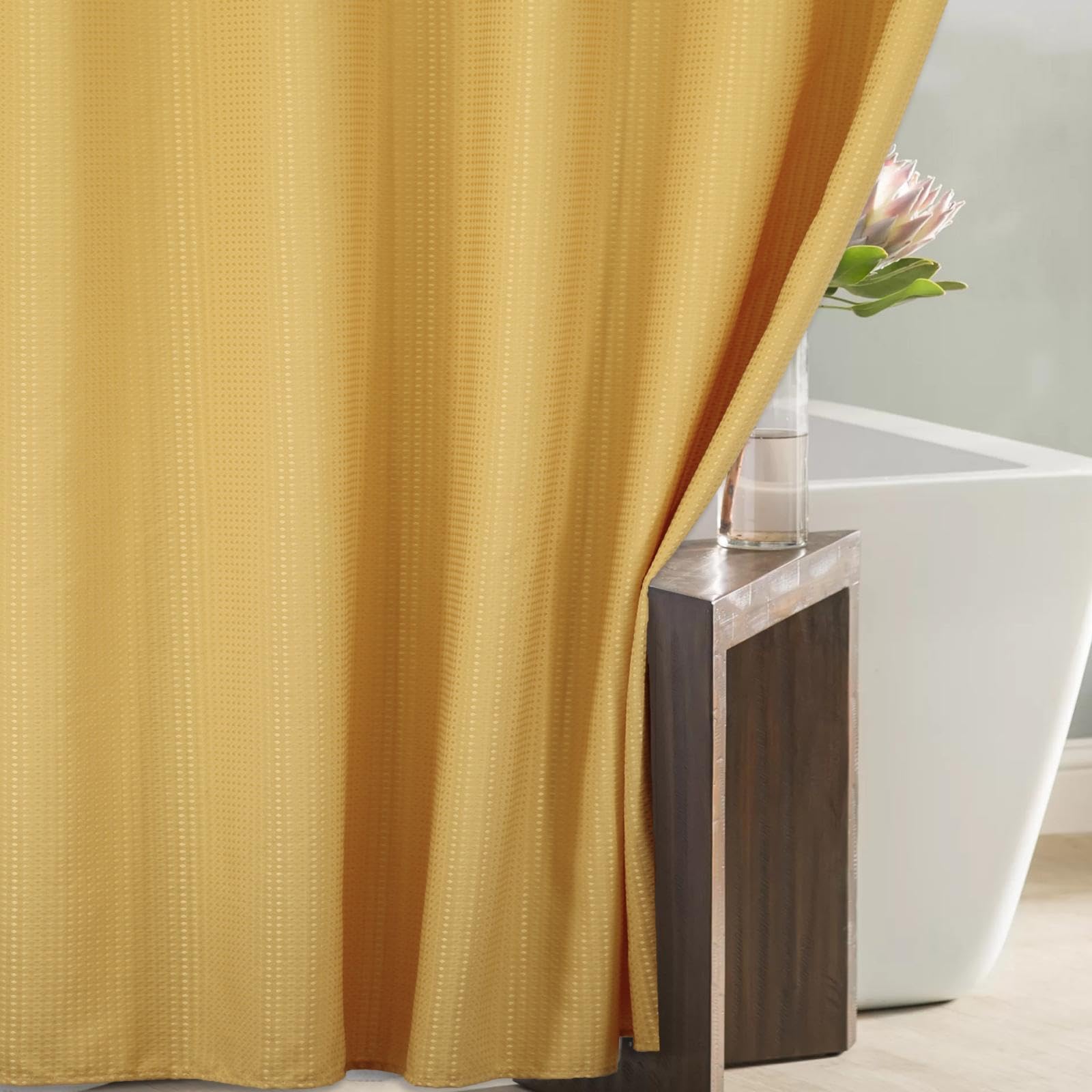 Cortina de ducha de gofres de oro amarillo: cortinas de ducha de tela texturizada resistente para baño de niñas, repelente al agua