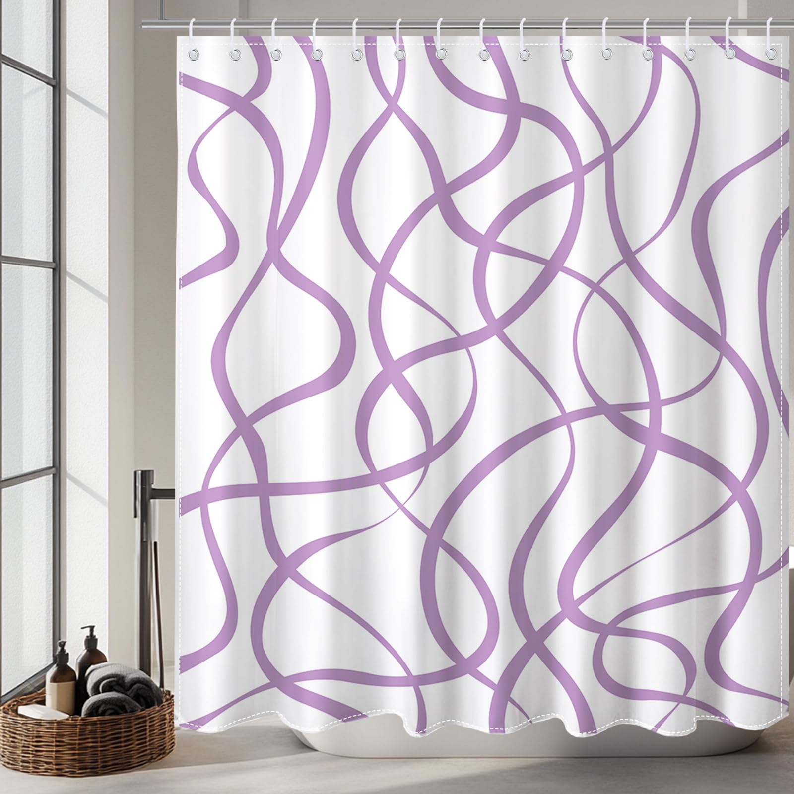 Mocsicka Cortina de ducha a rayas moradas para baño, moderna cortina de ducha de arte abstracto ondulado con 12 ganchos, decoració
