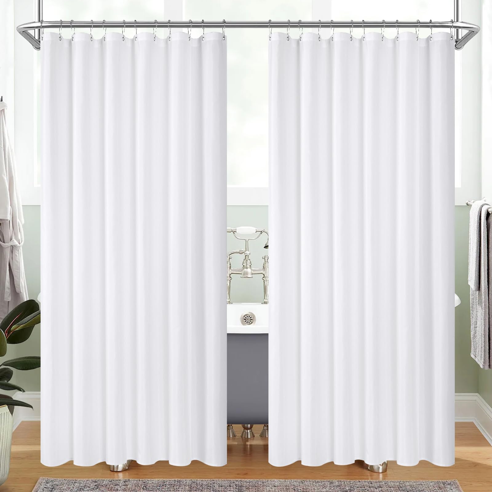 MitoVilla Paquete de 2 cortinas de ducha de tela blanca, 72 pulgadas de ancho x 72 pulgadas de alto, cortina de ducha simple o for