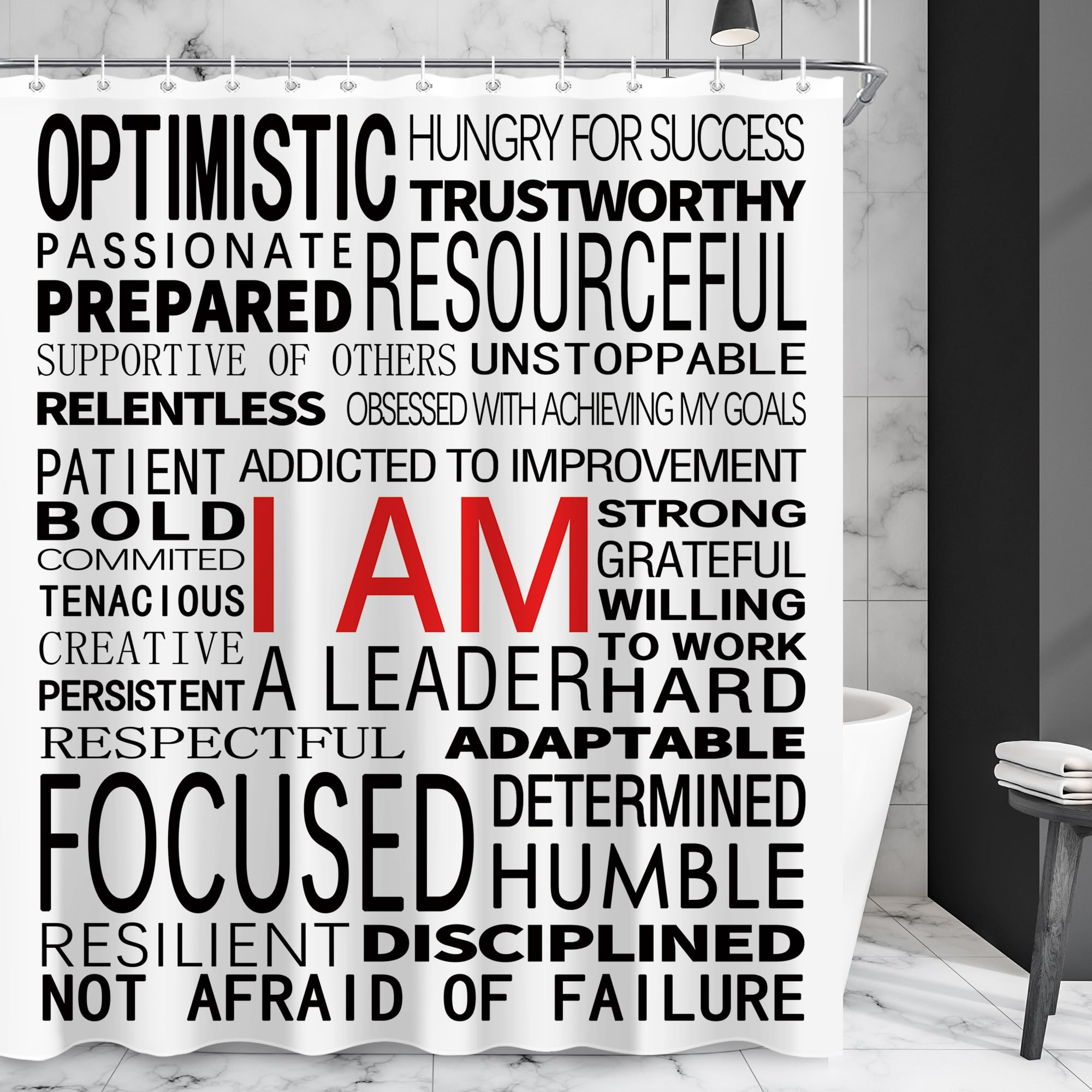 Juego de cortinas de ducha motivacionales en blanco y negro para baño, 60 pulgadas de ancho x 72 pulgadas de alto, con citas moder