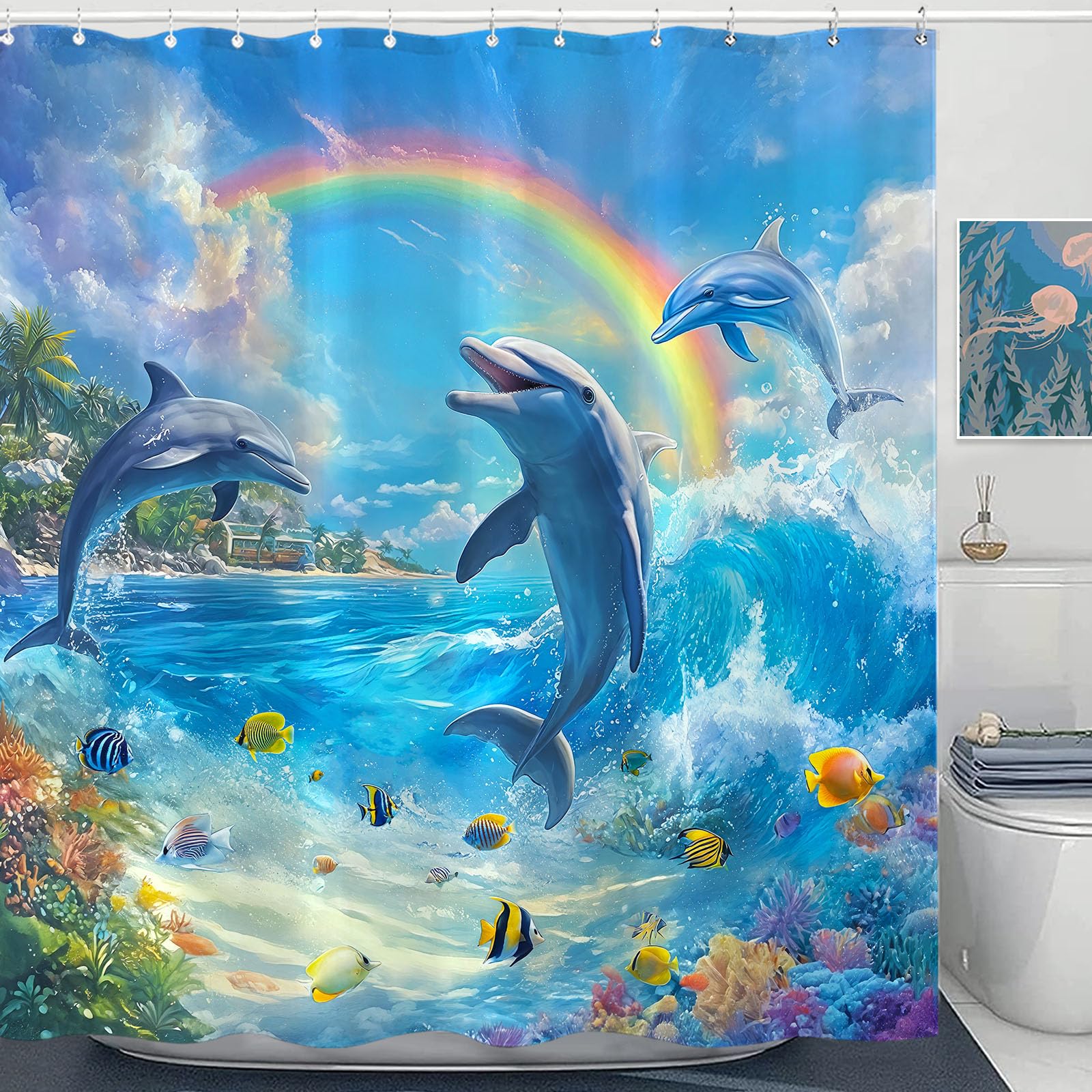 AAtter Cortina de ducha con diseño de arcoíris para niñas, colorida, divertida, bonita, de lunares, brillante, negro, abstracto, n