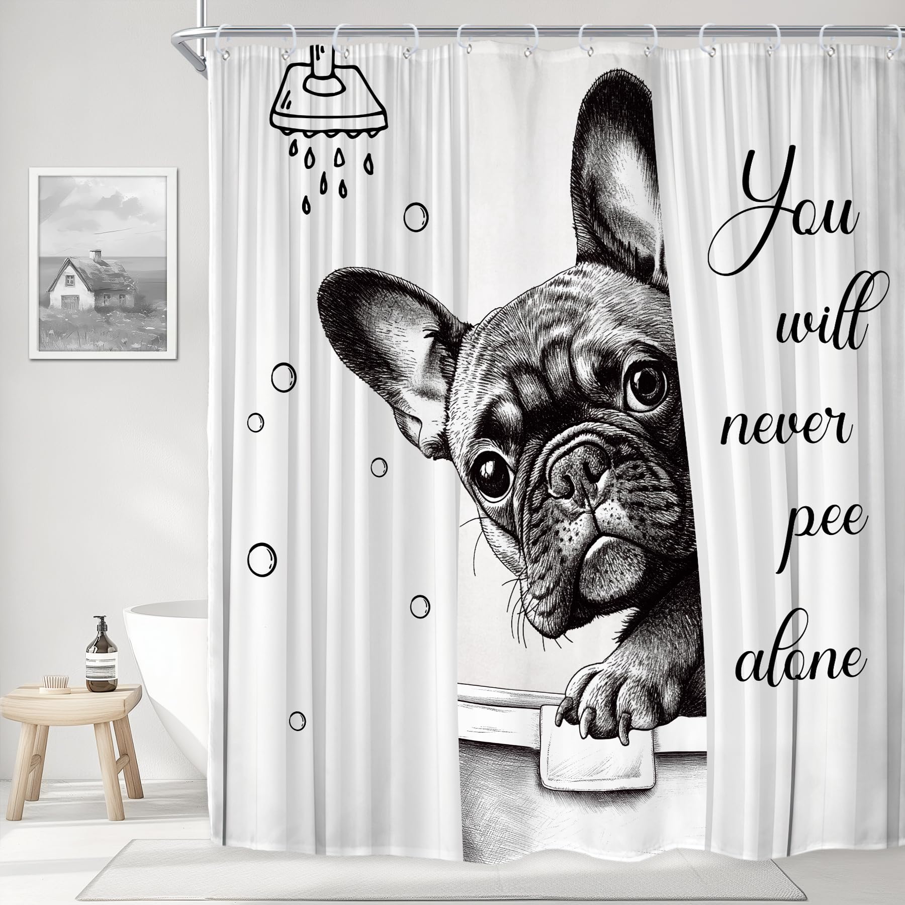 Riyidecor Divertida cortina de ducha de perro para decoración de baño, 72 pulgadas de ancho x 72 pulgadas de alto, citas divertida